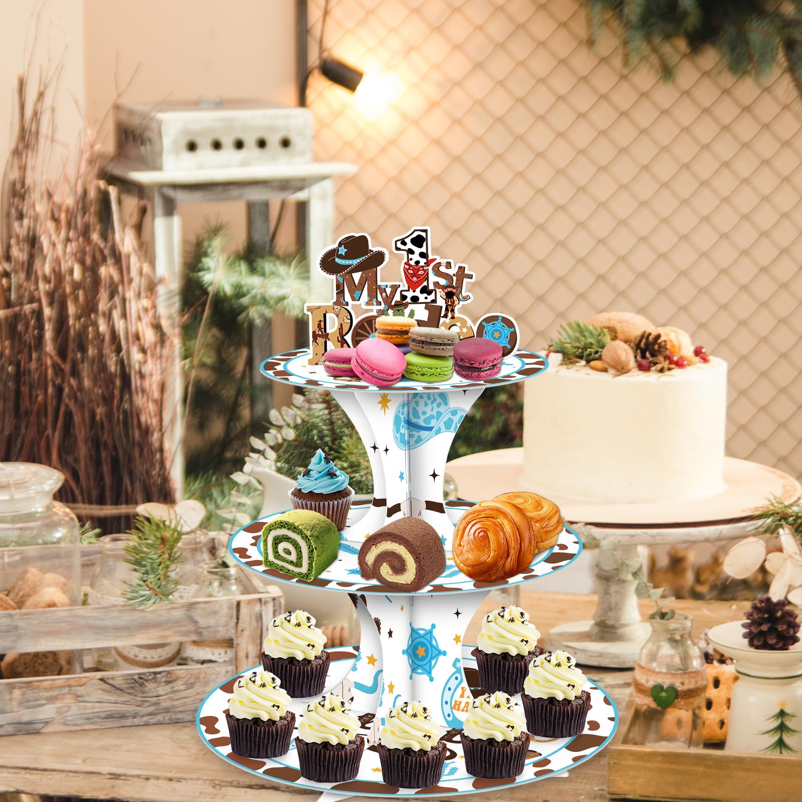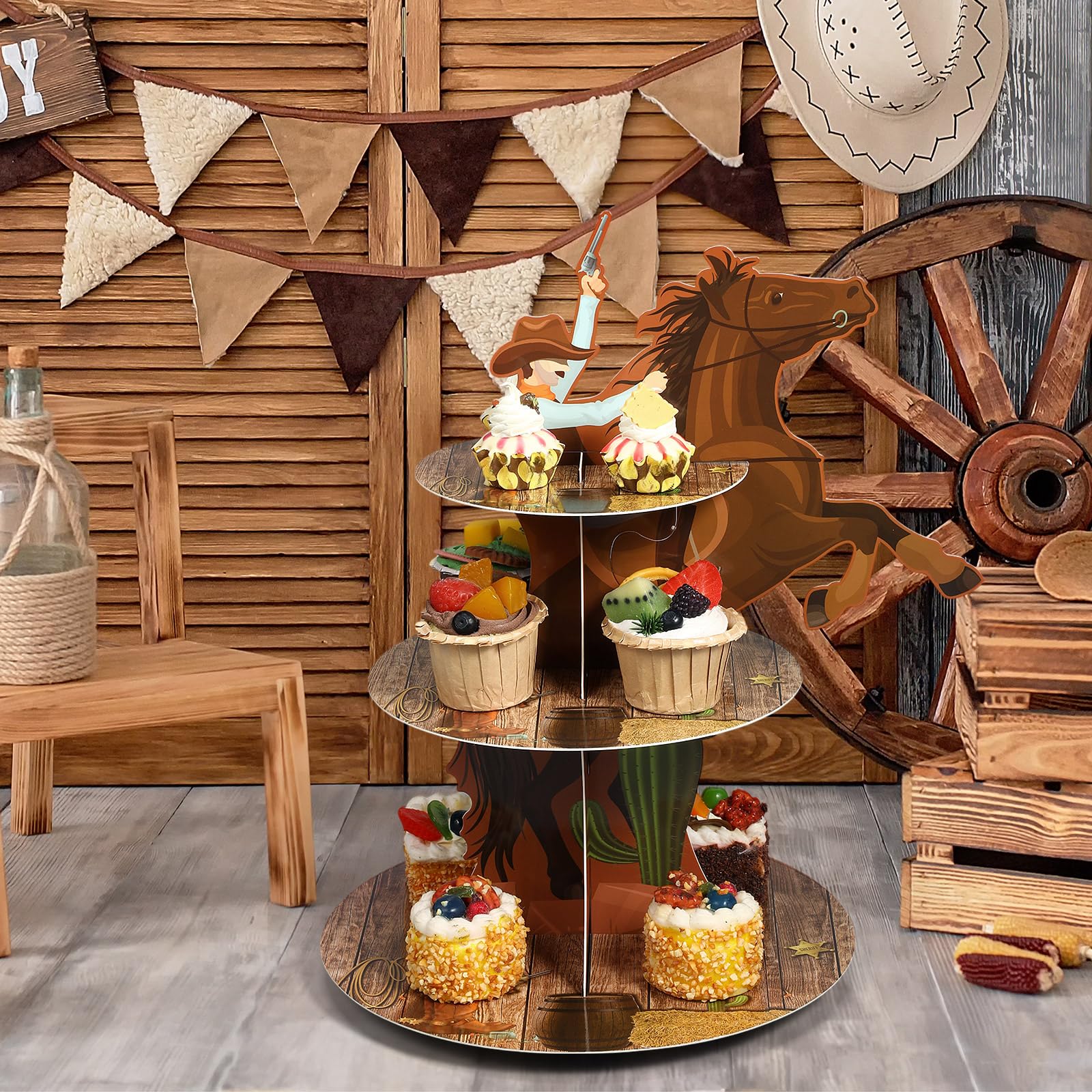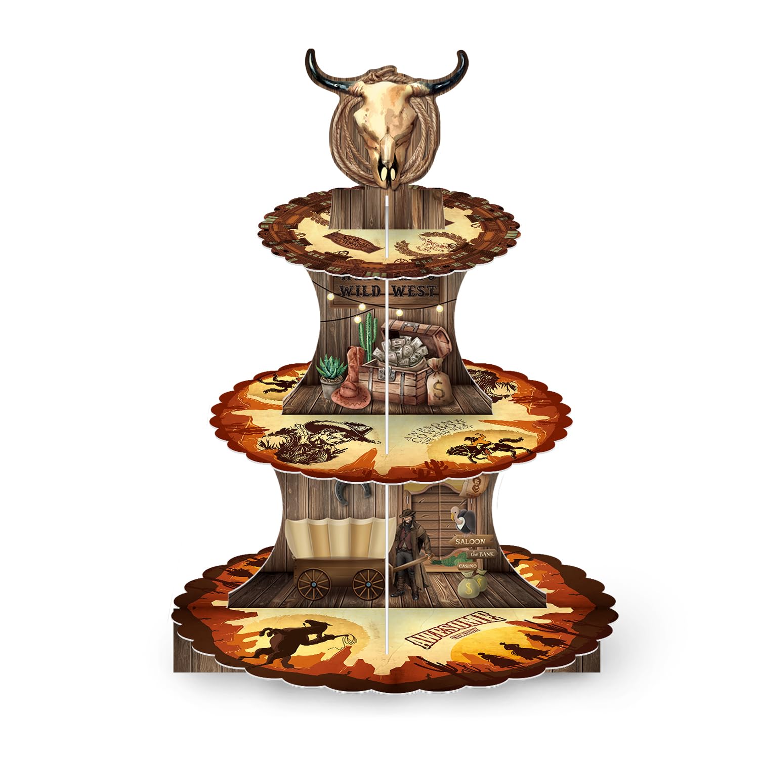 Yeehaw! Mach deine Cowboy-Party perfekt mit diesen coolen Cupcake-Ständern im Western-Design. Im 2er-Pack mit je 3 Etagen - Platz für bis zu 24 Cupcakes! Die Ebenen haben 30cm, 24,1cm und 19,1cm Durchmesser. Das Design mit Scheunentüren und Cowboy-Motiven sorgt für echte Wilder-Westen-Atmosphäre. Perfekt für Cowboy-Geburtstage, Babypartys oder Western-Themenpartys. Aus hochwertigem, wasserdichtem Material - robust und wiederverwendbar. Super einfach aufzubauen, ganz ohne Werkzeug. Nach der Party platzsparend verstauen. Ob für die erste Rodeo-Party deines Kleinen oder einen Western-Abend mit Freunden - diese Ständer sind der Hit! Deine Gäste werden begeistert sein von der authentischen Deko. Einfach Cupcakes draufstellen und die Party kann beginnen! Hol dir den Wilden Westen nach Hause!