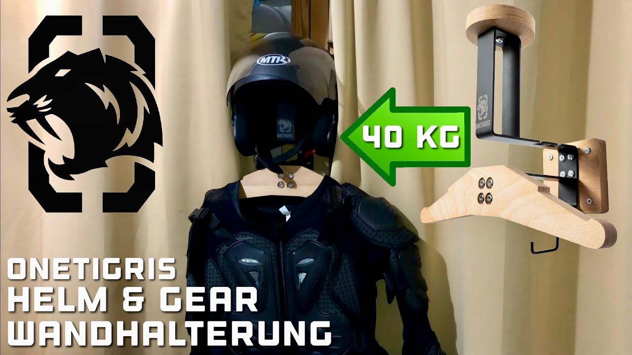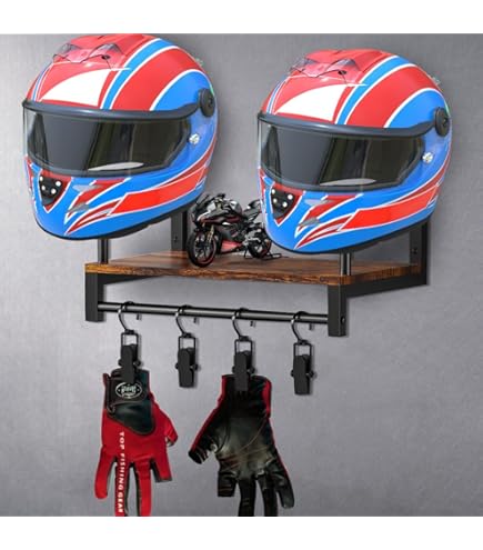 • Motorradhelm Halterung Wand - 3-in-1 Aus Massivholz & Metall, Mit Handschuh-Clips