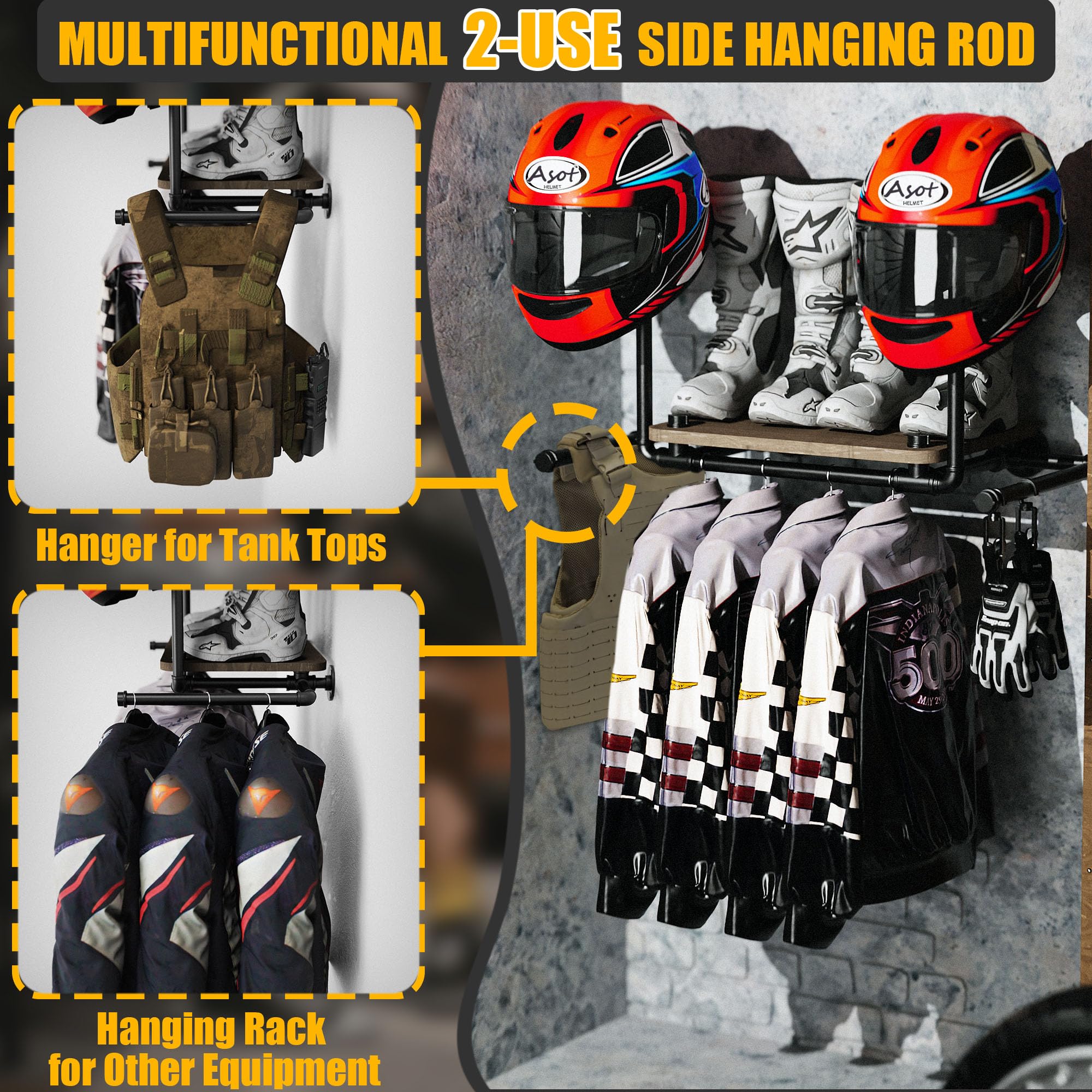Motorradhelm Halterung Wand - 3-in-1 Aus Massivholz & Metall, Mit Handschuh-Clips