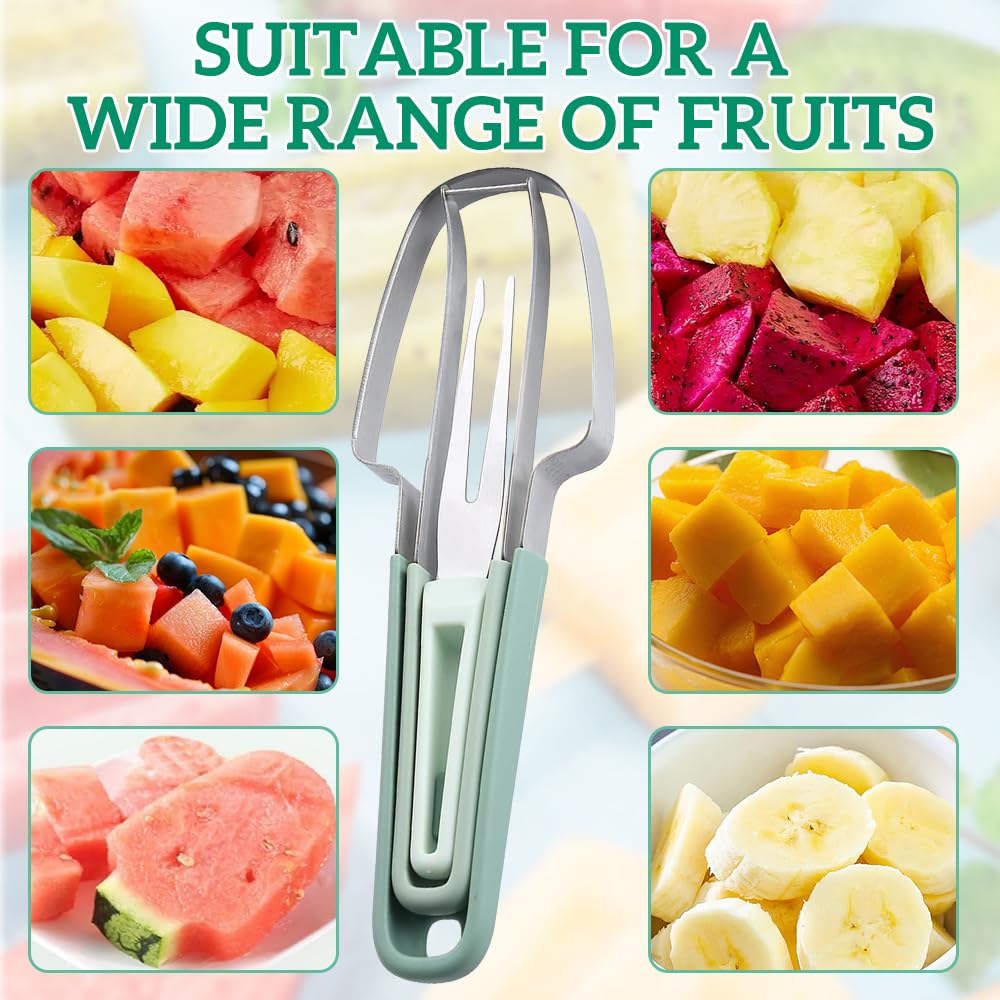 Wassermelone schneiden ohne Sauerei? Mit diesem 3-in-1 Obstschneider aus Edelstahl wird's zum Kinderspiel! Das Set hat alles, was du brauchst: einen Melonenschneider für perfekte Scheiben, einen Ausstecher für coole Eis-am-Stiel-Formen und eine praktische Gabel zum bequemen Essen. Einfach den Schneider in die Melone drücken - schon hast du gleichmäßige Stücke ohne dass der Saft überall hinspritzt. Aus lebensmittelechtem Edelstahl und PP-Material, also absolut sicher und leicht zu reinigen. Super kompakt und leicht - perfekt für Picknicks, Gartenpartys oder einfach für zu Hause. Funktioniert übrigens auch super mit anderen Früchten wie Mangos oder Kiwis! Ein geniales Geschenk für alle, die praktische Küchenhelfer lieben.