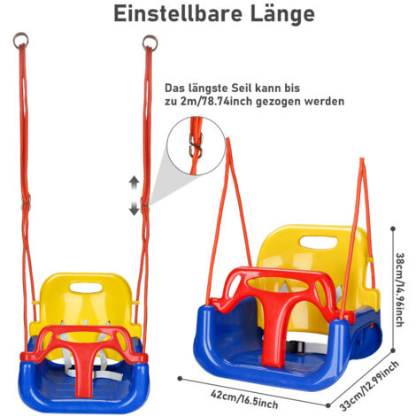 Wow, dieses 3-in-1 Schaukelset ist der totale Spielplatz für den Garten! Da ist alles dabei: eine Kletterschaukel mit robustem Holzbarren, eine weiche Schaukel für's gemütliche Schwingen und zwei Hängeringe für Fitness-Übungen. Alles aus Hochleistungsseilen, hält bis zu 150kg aus! Die Längen sind verstellbar - Ringe von 140-220cm, Schaukel von 110-190cm, also für kleine und große Kinder geeignet. Mit 5 Gurten und 5 Karabinern baust du es super einfach auf, ob an Fitnessstangen, Decken oder Spielgerüsten. Die Kletterschaukel hat rutschfeste Plattformen und 3-Strang-Seile für extra Sicherheit. Perfekt für Garten, Spielplatz oder Hinterhof - da haben die Kids stundenlang Spaß! So förderst du spielerisch Kraft, Koordination und Mut. Einfach aufhängen und losspielen - das wird der Hit bei den Kleinen!