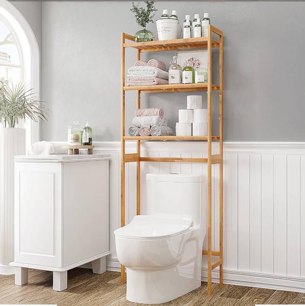 Wow, dieses 3-stöckige Regal ist ja die Rettung für jedes kleine Badezimmer! Mit 65x20x161,5cm nutzt es perfekt den Platz über der Toilette - ohne wertvollen Bodenraum zu beanspruchen! Aus stabiler Spanplatte und Metallrahmen - hält satte 40kg Gesamtgewicht! Jedes Regal trägt 13kg - also alles was du so im Bad brauchst: Handtücher, Shampoo, Toilettenpapier... Mit 4 Haken und nem Taschentuchhalter - noch mehr Stauraum! Die verstellbaren Füße sorgen für Stabilität und schützen den Boden! Das Anti-Kipp-Sicherheitskit macht es super sicher - auch mit Kindern oder Haustieren! Passt nicht nur ins Bad, sondern auch in Waschküche, Wohnzimmer oder Balkon! Einfach aufstellen und schon hast du Ordnung im Chaos! Montage ist easy - alles ist beschriftet und die Anleitung ist dabei! Einfach ein Game-Changer für jede Wohnung!