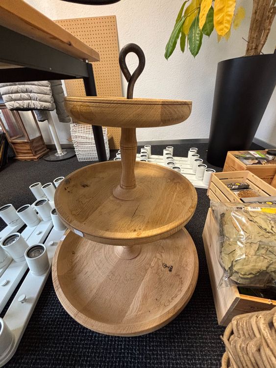 So ein süßes Teil! Dieser 3-stöckige Aufsteller von BYCY bringt nicht nur Ordnung in dein Zuhause, sondern sieht auch noch richtig stylisch aus. Mit seinem Vintage-Design und der schönen Holzmaserung passt er super in viele Einrichtungsstile.\n\nHergestellt aus massiver Spanplatte (1,5cm dick!) mit stabilen Eisenbeinen ist das Regal richtig robust. Das abgestufte Design ist nicht nur hübsch anzusehen, sondern nutzt den Platz auch optimal aus. Jede Ebene ist 5,6cm hoch - perfekt für die meisten kleinen Gegenstände.\n\nEinsatzmöglichkeiten gibt's wie Sand am Meer: Als Make-up-Organizer auf dem Schminktisch, für Gewürze in der Küche, für Figuren und Sammelstücke im Wohnzimmer oder als Cupcake-Ständer für Partys. Sogar für Parfümflaschen oder kleine Pflanzen ist es super geeignet!\n\nDie Montage ist total einfach - laut Beschreibung soll das ja schnell gehen. Die Schrauben sind versteckt angebracht, stören also nicht das Gesamtbild. Und die Oberfläche ist wasser- und staubabweisend, lässt sich also easy mit nem feuchten Tuch reinigen.\n\nOb als Geschenk oder für dich selbst - dieser Aufsteller ist einfach vielseitig und macht was her. Bringt Ordnung in's Chaos und sieht dabei noch gut aus!