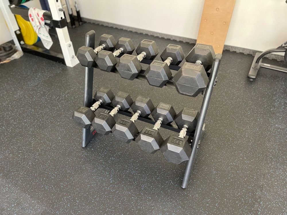 Mann, dieser Hantelständer bringt endlich Ordnung in dein Home-Gym! Mit drei Etagen bietet er genug Platz für mehrere Hanteln und Kurzhanteln - alles schön sortiert und griffbereit. Aus robustem PP-Material gefertigt, ist er verschleißfest und hält auch schwereren Gewichten problemlos stand. Die Maße von etwa 33x8,5x29cm machen ihn super kompakt, sodass er nicht viel Platz wegnimmt. Perfekt für zu Hause oder auch für kommerzielle Fitnessstudios. Die vertikale Aufstellung spart wertvollen Bodenraum und gibt dir mehr Platz für deine Workouts. Einfach die Hanteln in die dafür vorgesehenen Halterungen legen und schon sieht dein Trainingsbereich aufgeräumt und professionell aus. Nie wieder herumliegende Hanteln, die zur Stolperfalle werden!