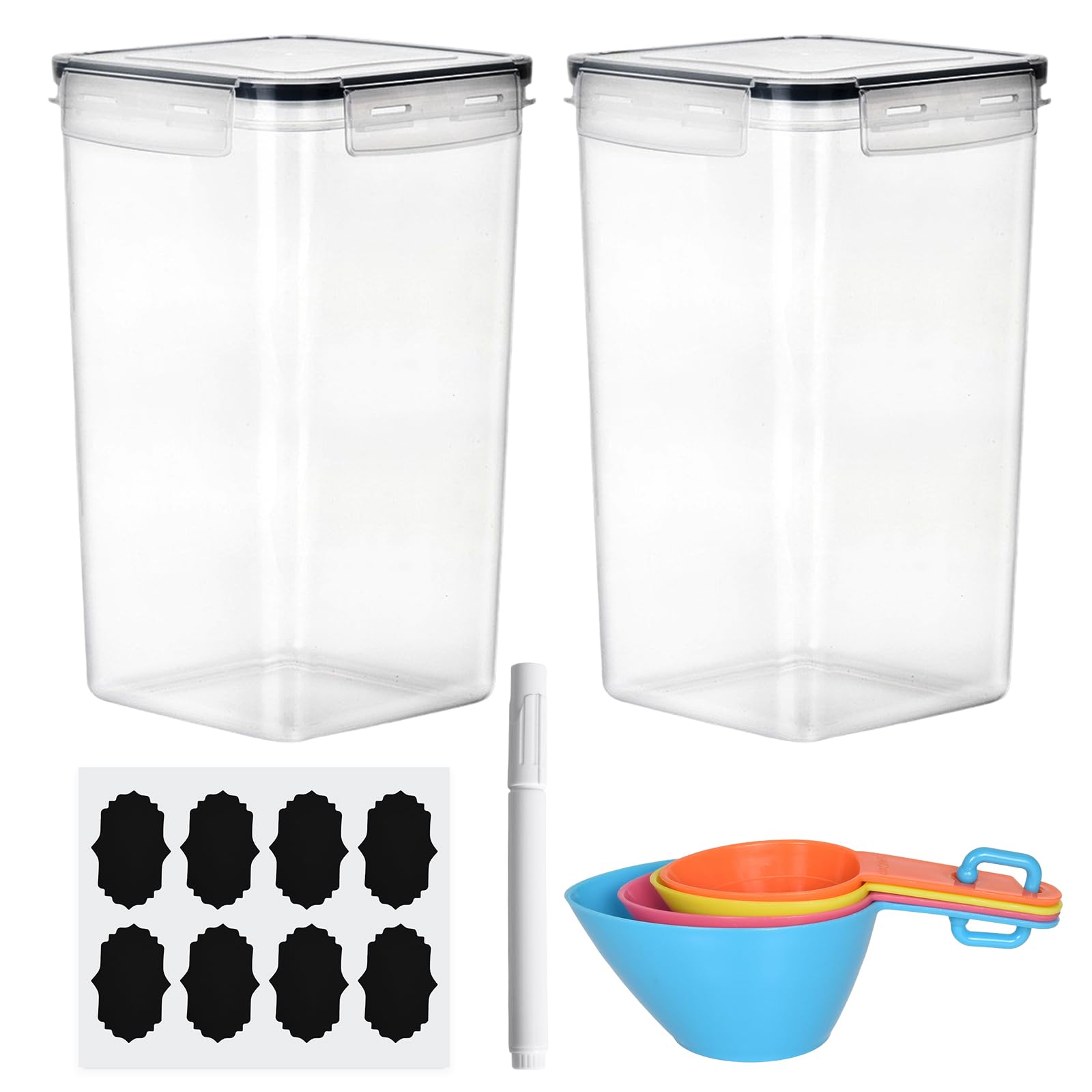 Mann, diese Vorratsdosen sind so praktisch! Du kriegst drei Stück, jeweils 2,5 Liter - das reicht für etwa 1 kg Mehl, Reis, Getreide oder was du sonst so trocken lagern willst. Die Dosen sind komplett luftdicht - mit diesem Vier-Seiten-Verschluss und Silikondichtung. Da kommt keine Feuchtigkeit rein und keine Motten oder so was. Das Beste: Sie sind aus lebensmittelechtem, durchsichtigem Kunststoff. Siehst also sofort, was drin ist und wie viel noch da ist. Inklusive sind Etiketten und Messlöffel - super zum Abmessen beim Backen! Die Dosen sind spülmaschinenfest (obere Ablage!) und stapelbar, sparen also Platz. Du kannst die nicht nur für Lebensmittel nehmen, sondern auch als Futterdose für deine Katze oder deinen Hund. Einfach den Deckel draufdrücken - er schnappt fest zu. So bleiben deine Vorräte ewig frisch und du hast immer Ordnung in der Küche. Einfach genial!