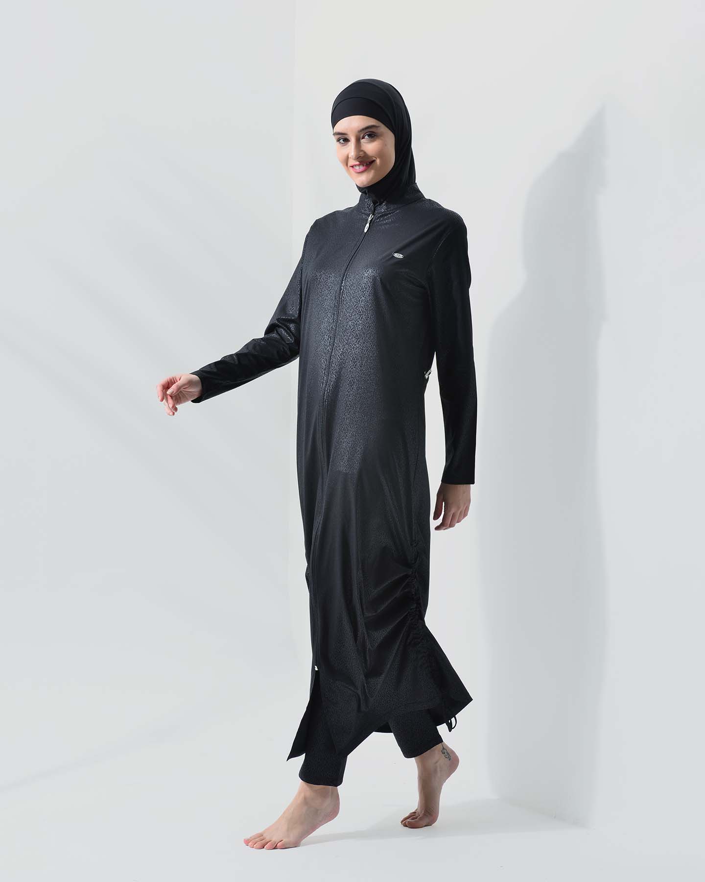 Suchst du einen diskreten Badeanzug, der trotzdem stylisch ist? Dieses 3-teilige Burkini-Set von NaLatia ist perfekt! Mit langen Ärmeln, langer Hose und praktischem Hijab für volle Bedeckung. Aus 88% Polyester und 12% Elasthan - super weich, formstabil und bleicht nicht aus. Die schönen Puff-Ärmel geben dem Ganzen einen eleganten Touch. Egal ob nass oder trocken - der Stoff ist immer angenehm leicht und kratzt nicht. Und das Beste: Mit UPF30 Schutz bist du auch vor der Sonne sicher! Perfekt für Schwimmbad, Strand oder Urlaub. In verschiedenen Größen erhältlich, von klein bis groß. So kannst du unbeschwert plantschen und dich trotzdem bedeckt fühlen!