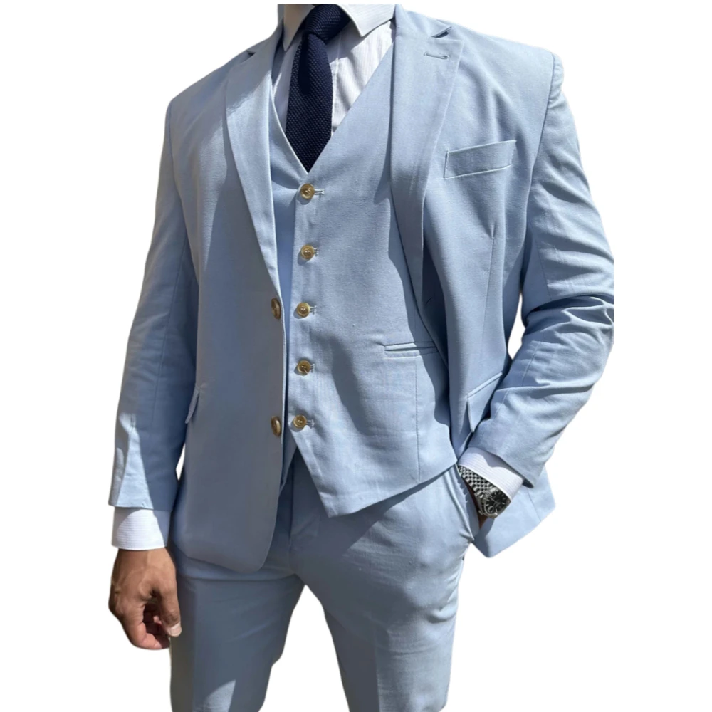 Boah, dieser Leinenanzug ist perfekt für den Sommer! Das 3-teilige Set besteht aus Blazer, Weste und Hose - alles in schmaler Passform für einen modernen Look. Aus Leinen, Polyester und Spandex - super atmungsaktiv und bequem. Der Blazer hat 2 Knöpfe, Pattentaschen und Belüftungsschlitze. Die Weste hat verstellbaren Rückengürtel für perfekte Passform. Hose mit verstellbarer Taille - sitzt wie angegossen. Perfekt für Hochzeiten, Business-Events oder den Abschlussball. Kann lässig mit T-Shirt oder schick mit Hemd und Krawatte kombiniert werden. Chemische Reinigung empfohlen - einfach aufhängen und dampfbügeln. Siehst du darin einfach umwerfend aus - dein neuer Lieblingsanzug für besondere Anlässe!