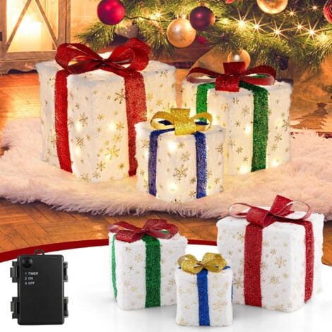 Wow, diese beleuchteten Geschenkboxen sind der absolute Hingucker für jede Feier! Das 3-teilige Set in verschiedenen Größen (15,5cm, 20,5cm, 25,5cm) sieht einfach magisch aus. Mit 50 warmweißen LED-Lichtern und 8 Blinkmoden schaffst du sofort weihnachtliche Stimmung. Das Tolle: IP44 wasserdicht - perfekt für drinnen und draußen! Mit Fernbedienung bequem steuerbar. Super einfach aufzubauen - kein Werkzeug nötig. Ideal für Weihnachten, Hochzeiten oder Partys. Die Boxen sind stapelbar und platzsparend zu verstauen. Mach dein Zuhause zum echten Eyecatcher!
