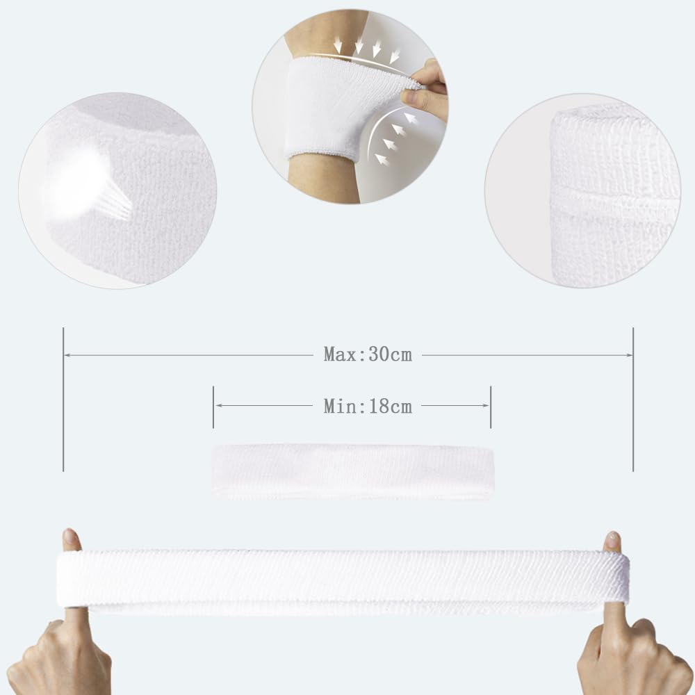 Sport ohne Schweiß im Gesicht? Mit diesem 3-teiligen Schweißband-Set kein Problem! Enthält 1 Stirnband und 2 Handgelenkbänder - alles super saugfähig aus Polyester-Baumwolle. Die Bänder saugen Schweiß super schnell auf und trocknen auch fix wieder. Perfekt für Basketball, Tennis, Laufen, Fitness oder Yoga. Maße: Stirnband 18x5cm, Handgelenkbänder 8x8cm - passen für Damen und Herren. Elastisch und bequem, rutschen nicht. Übrigens: Auch mega als Accessoire für 80er/90er Partys oder Karneval! Mach dein Training komfortabler und halte Schweiß unter Kontrolle. Einfach anziehen und loslegen!