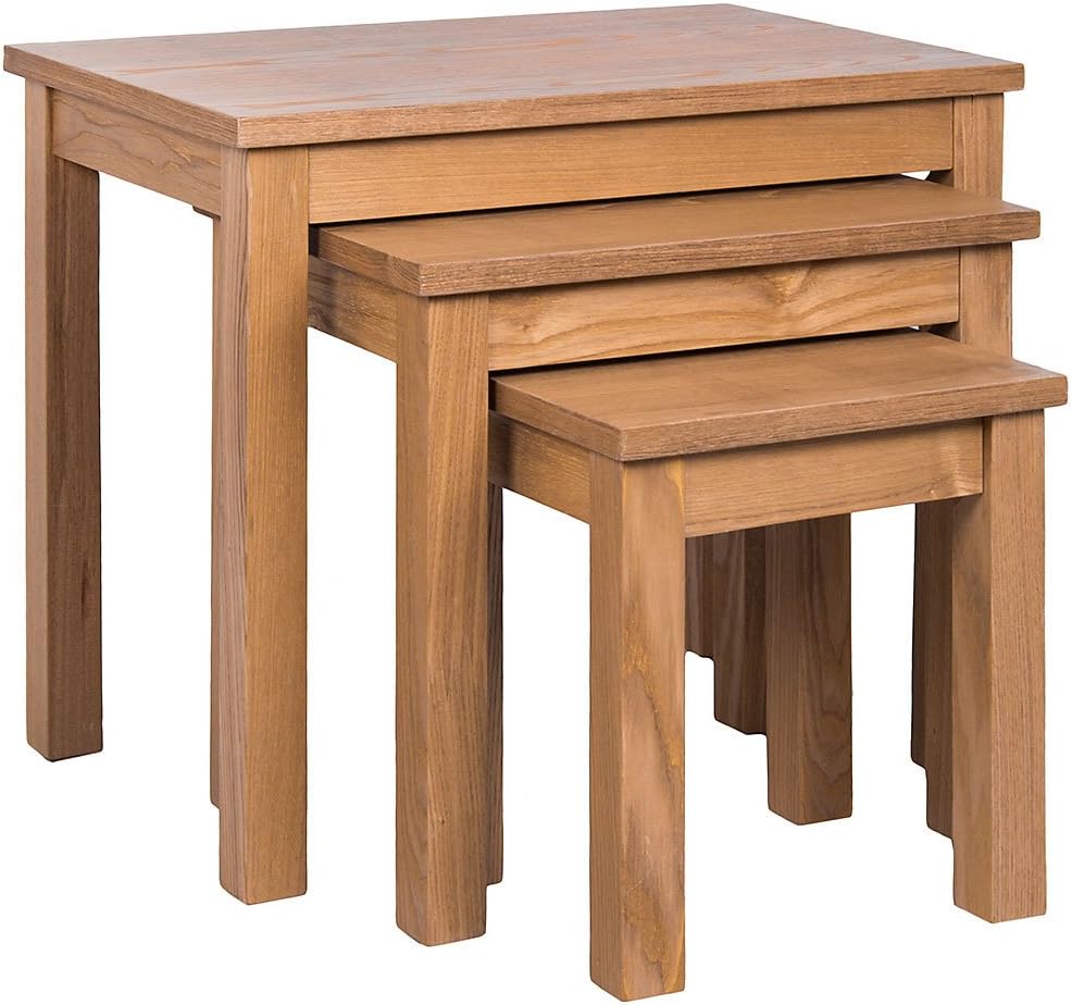 Boah, diese Nesttische von Home Discount sind ja mal richtig praktisch! Das 3-teilige Set in schönem Eichenfurnier sieht nicht nur super stylisch aus, sondern spart auch jede Menge Platz. Die drei Tische haben unterschiedliche Größen (34,4x53x47 cm, 29,3x40,7x39,4 cm und 24,2x28x32 cm) und stellen sich platzsparend ineinander - wenn du sie mal nicht brauchst. Perfekt fürs Wohnzimmer als Beistelltische, aber auch super als Nachttisch im Schlafzimmer oder im Büro. Aus stabilem Holz gefertigt und wunderschön verarbeitet - das natürliche Eichenfurnier macht was her! Einfache Selbstmontage - kommt flach verpackt und ist schnell zusammengebaut. Reinigen geht ganz easy mit einem feuchten Tuch. Stell deine Lieblingsdekoration drauf, ne Lampe oder die Tasse Tee - diese Tische sind echte Allrounder! Ein absolutes Must-Have für jede Wohnung!
