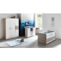 Das perfekte Babyzimmer in einem Set! Die Marlon Serie von Arthur Berndt vereint alles, was du für dein Baby brauchst. Der 3-türige Kleiderschrank (130x195x51 cm) bietet mit 7 Fächern und Kleiderstange riesigen Stauraum. Das Babybett ist super vielseitig: höhenverstellbare Liegefläche, abnehmbare Schlupfsprossen, Bettschubkasten und Umbau zum Juniorbett möglich! Die Wickelkommode (115x100x79 cm mit Aufsatz) hat 3 große Schubkästen mit Soft-Close-Funktion und abnehmbaren Wickelaufsatz für spätere Nutzung als normale Kommode. Alles im trendigen Artisan-Oak Design mit Kreideweiß-Akzenten - sieht einfach traumhaft aus! Abgerundete Ecken und Stollen für maximale Sicherheit. Aus hochwertigem melaminbeschichtetem Holzwerkstoff, pflegeleicht und langlebig. Nach DIN EN 12221-1 zertifiziert - dein Baby ist sicher aufgehoben. Wickelfläche 75x85 cm, trägt bis 15 kg. Einrichtung, die von der Babyzeit bis ins Teenie-Alter mitwächst! Schafft sofort eine gemütliche Wohlfühlatmosphäre im Kinderzimmer. Dein kleines Wunder hat den schönsten Start ins Leben!
