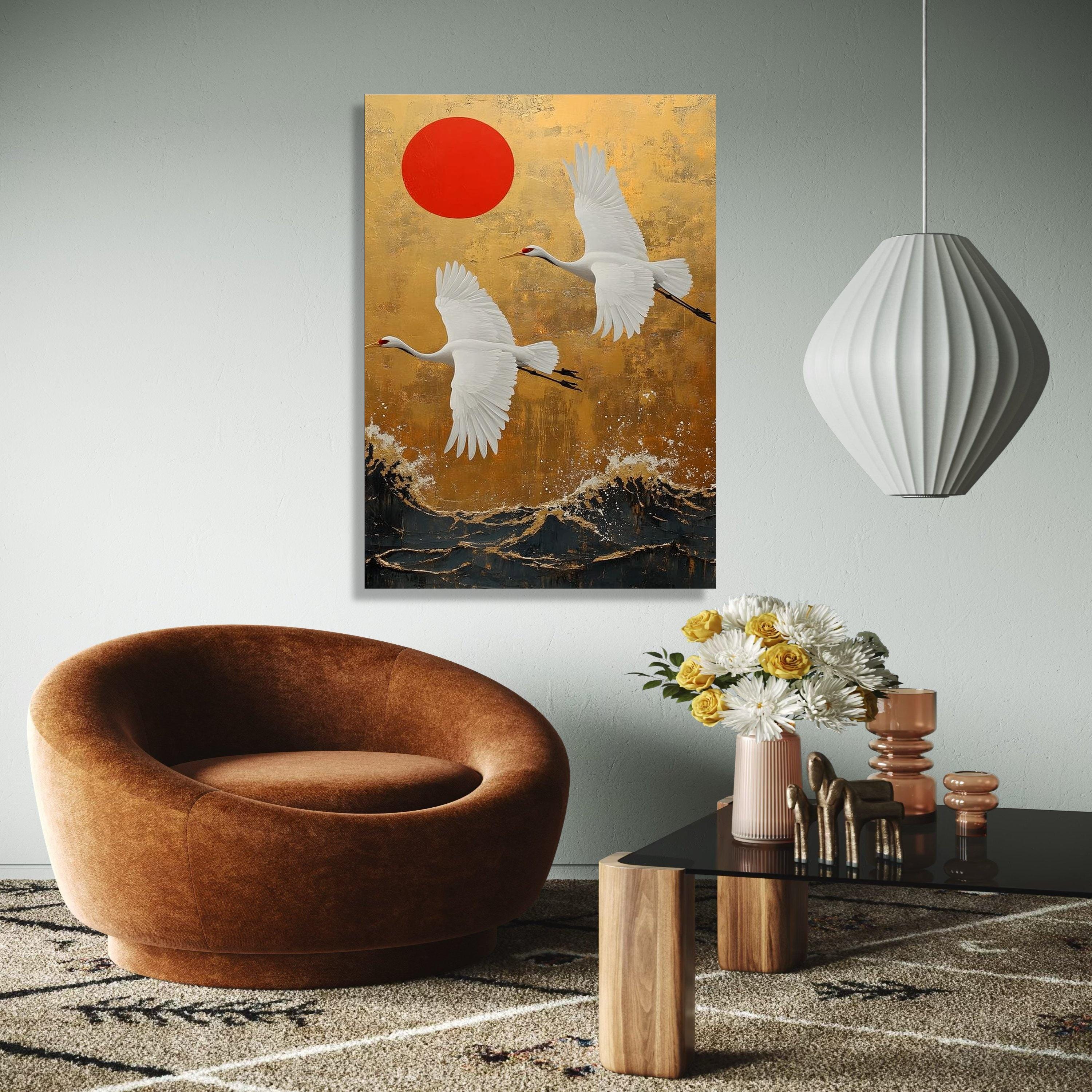 Dieses wunderschöne Leinwandbild zeigt zwei elegante japanische Kraniche im Flug – ein Symbol für Glück und Langlebigkeit! Mit den Maßen 30,5 x 30,5 cm ist es ideal für Wohnzimmer, Schlafzimmer, Flur oder sogar das Badezimmer. Der Holzrahmen gibt ihm einen modernen, doch zeitlosen Look, und dank mitgelieferter Aufhänger ist es sofort einsatzbereit. Hergestellt aus hochwertiger Leinwand mit lebendigen, verblassungsbeständigen Farben. Perfekt als Geschenk oder um deinen vier Wänden einen individuellen Touch zu verleihen!