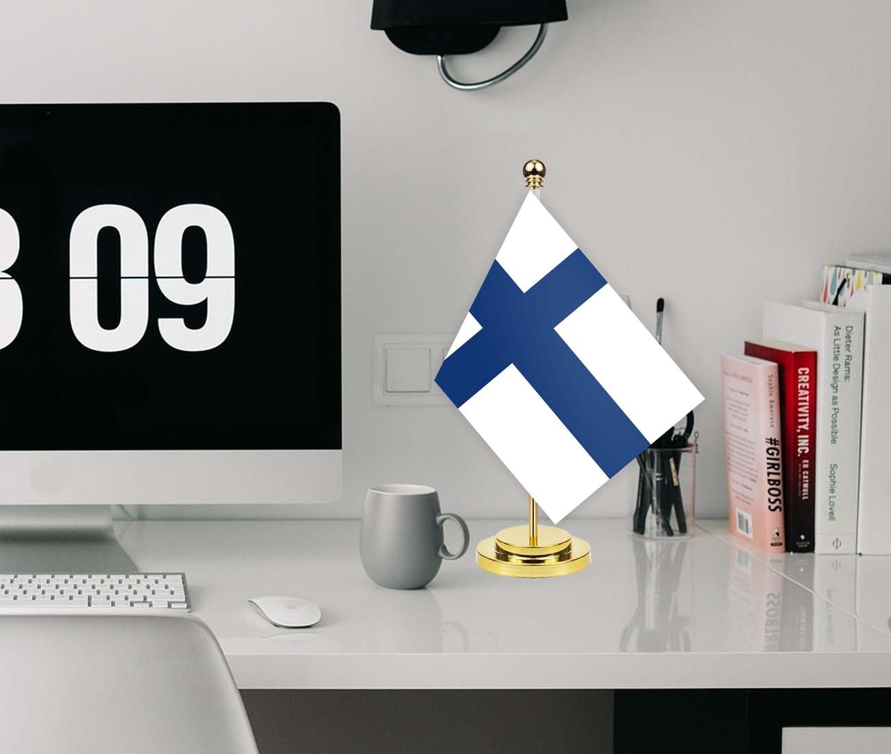 Zeig deine Finnland-Liebe mit dieser süßen Tischflagge! Mit 30 cm Höhe ist sie perfekt für den Schreibtisch, Regal oder jede andere Dekorationsfläche.\n\nHergestellt aus hochwertigem 100% Polyester mit lebendigen, frischen Farben die nicht verblassen. Die goldene Metallstange gibt ihr einen edlen Look.\n\nSuper einfach zu montieren - einfach zusammenschieben und schon kann sie aufgestellt werden. Perfekt fürs Büro, Wohnzimmer oder für Finnen-Fans.\n\nIdeal für Meetings, Sportevents, Partys oder einfach als tägliche Dekoration. Zeigt stolz die blau-weiße Flagge Finnlands!\n\nEin Muss für jeden Finnland-Liebhaber. Auch als Geschenk eine super Idee für Freunde und Familie.