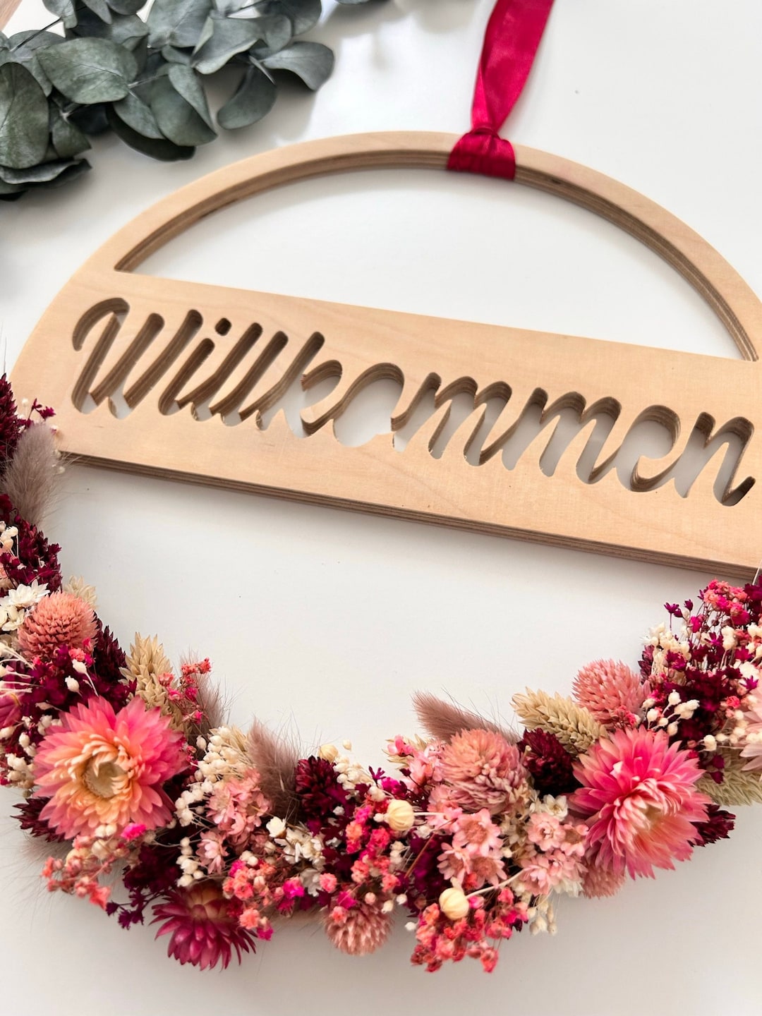 Herzlich willkommen! Dieser wunderschöne Türkranz (30 cm) mit Trockenblumen, Holzhäusern und Eisenschleife verbreitet sofort gemütliche Atmosphäre. Die natürlichen Akazienschoten und Gräser in der Mini-Vase sind haltbar und pflegeleicht. Das hölzerne 'Willkommen'-Schild und die herzförmigen Häuschen in Morandi-Farben passen zu jedem Einrichtungsstil. Ganzjährig einsetzbar - ob Frühling, Sommer, Herbst oder Winter. Perfekt für Haustür, Wand oder Fenster. Auch als Geschenk zur Einweihung oder zu Feiertagen ideal. Bring Charm und Wärme in dein Zuhause!