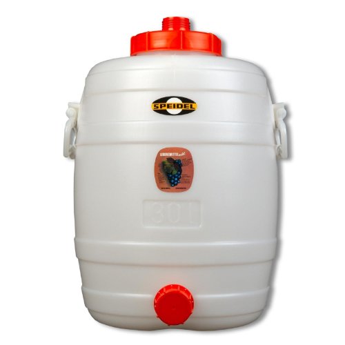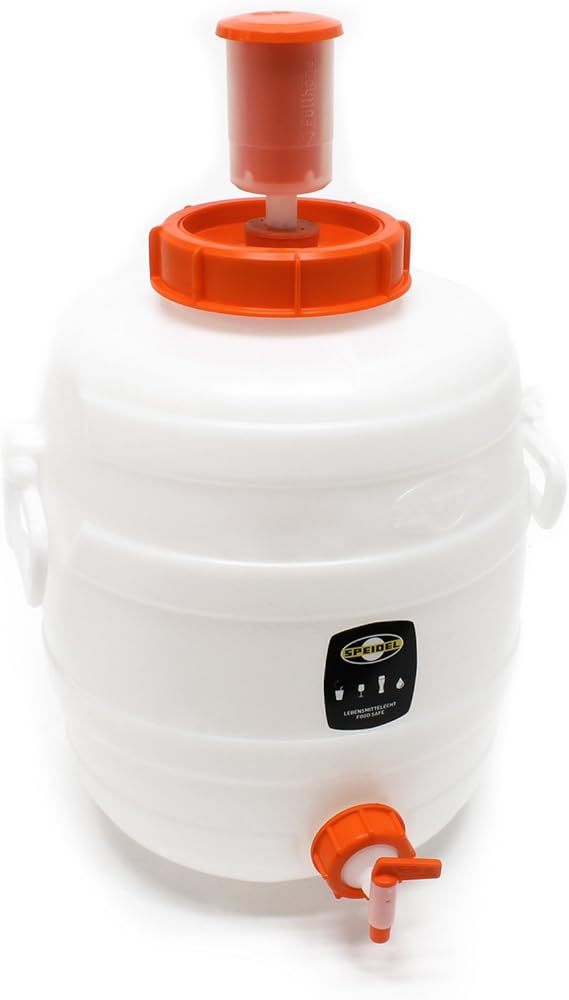 Keltere deinen eigenen Wein, Most oder Cider – wie ein Profi! Das Speidel Mostfass aus lebensmittelechtem Kunststoff (PE) fasst 30 Liter und ist perfekt für die Gärung und Lagerung von Getränken. Inklusive praktischem Auslaufhahn (NW 10) und Gärspund für eine kontrollierte Gärung. Die dicken Wände schützen das Aroma und die glatten Innenflächen machen die Reinigung zum Kinderspiel. Der große Schraubdeckel ermöglicht einfaches Befüllen und Reinigen. Mit stabilen Tragegriffen (bis 30 kg pro Griff) lässt sich das Fass auch voll problemlos transportieren. Hergestellt in Deutschland – Qualität, auf die du dich verlassen kannst. Ob für Apfelwein, Traubenmost oder selbst angesetzte Säfte – hier entstehen garantiert köstliche Getränke. Einfach befüllen, verschließen und geduldig warten… Prost!