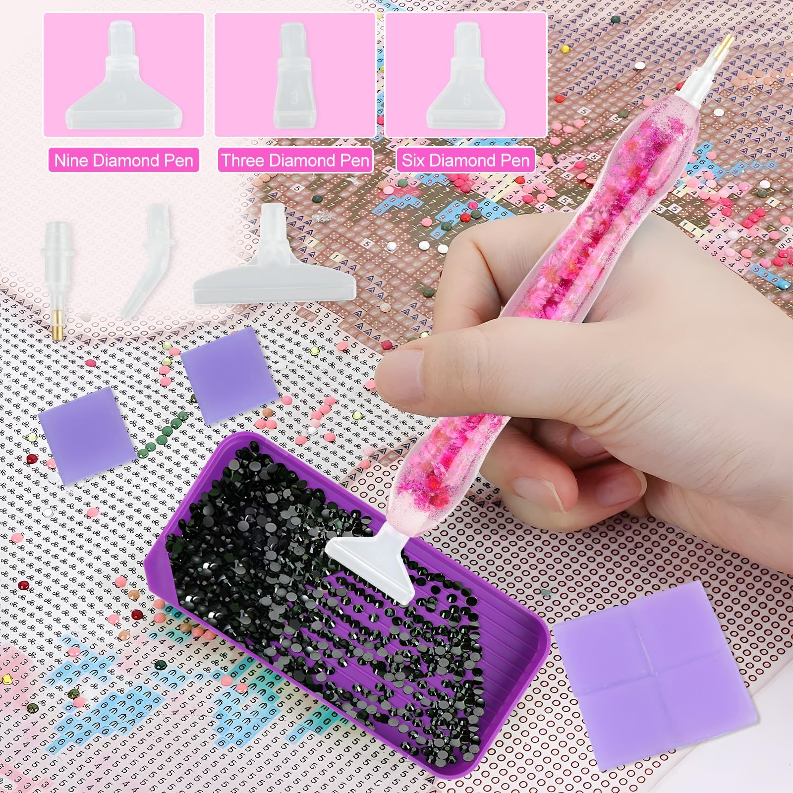 Die Stifte sind aus hochwertigem Kunststoff gefertigt, verblassen nicht und brechen nicht leicht. Das clevere Mehrfach-Bohrer-Design ermöglicht es, mehrere Diamanten gleichzeitig aufzunehmen - das spart enorm Zeit!