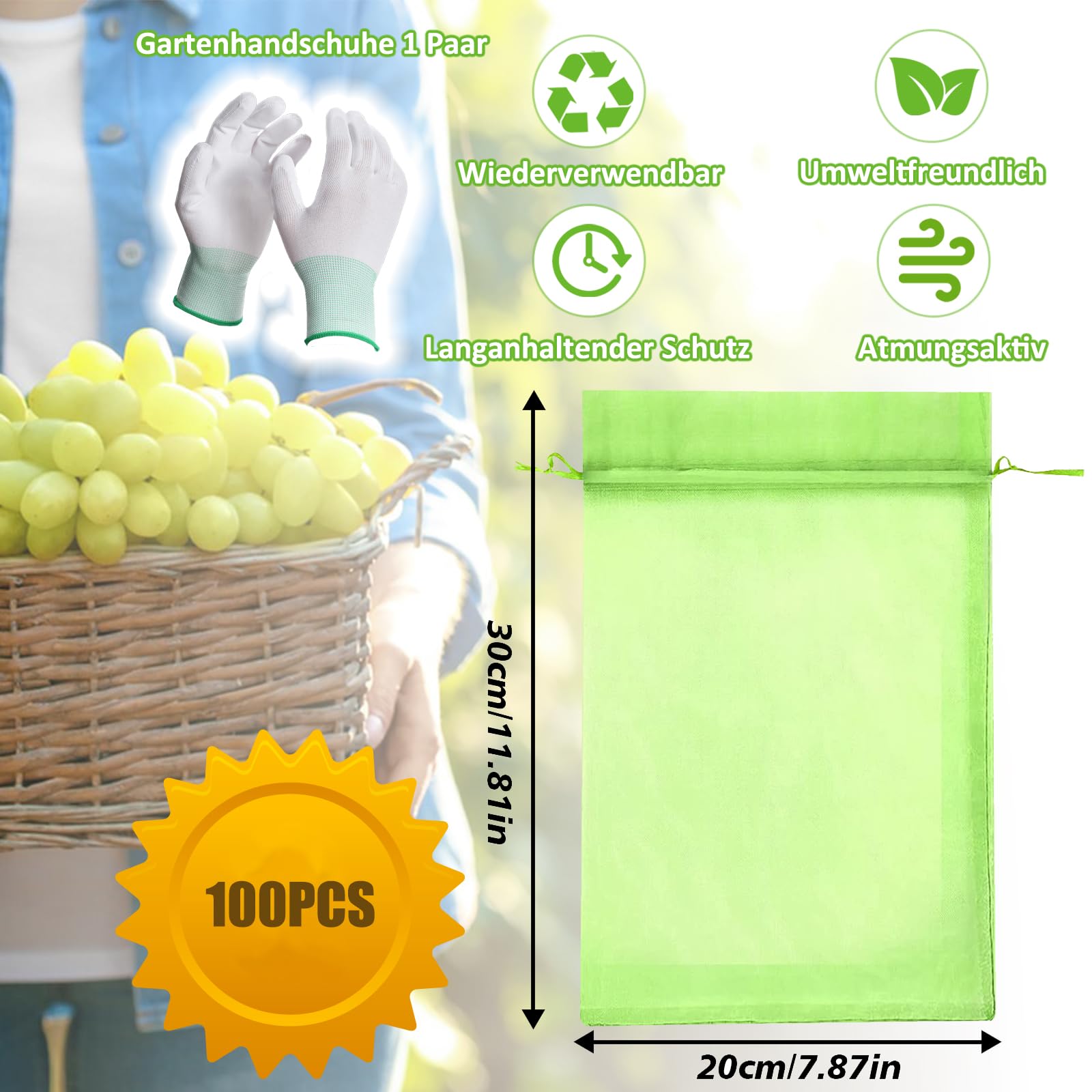 Endlich ungestört reifes Obst genießen! Diese CHUYIX Schutzbeutel bewahren deine Trauben, Beeren und anderes Obst vor Vögeln, Wespen und Fruchtfliegen. Aus atmungsaktivem Organza-Material - dehnbar und wiederverwendbar. Mit praktischem Zugband, das sich leicht öffnen und schließen lässt. Größe 30x40cm - perfekt für Trauben, aber auch für Äpfel, Birnen oder Tomaten. Verhindert dass Insekten ihre Eier legen und Vögel naschen, lässt aber Luft und Licht durch für gesundes Wachstum. Einfach über die Früchte stülpen, Zugband zuziehen - fertig! 30 Stück im Set - genug für deine ganze Ernte. Super für Bio-Gärtner die ohne Chemie auskommen wollen. Einfach abwaschbar und jahrelang verwendbar!