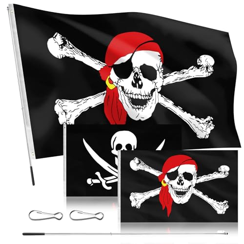 Ahoy, Piratenfans! Dieses Set mit 30 Piratenflaggen ist perfekt für jede Mottoparty. Zwei coole Designs: Totenkopf mit gekreuzten Knochen und rote Schal-Variante. Jede Flagge 14x21cm groß, aus waschbarem Polyester. Super für Halloween, Geburtstage oder Piraten-Partys. Kann überall aufgehängt oder geschwenkt werden. Macht jede Feier sofort piratenmäßig. Einfach auspacken und die Party kann beginnen - deine Gäste werden begeistert sein. Yo-ho-ho und ne Flasche Rum!
