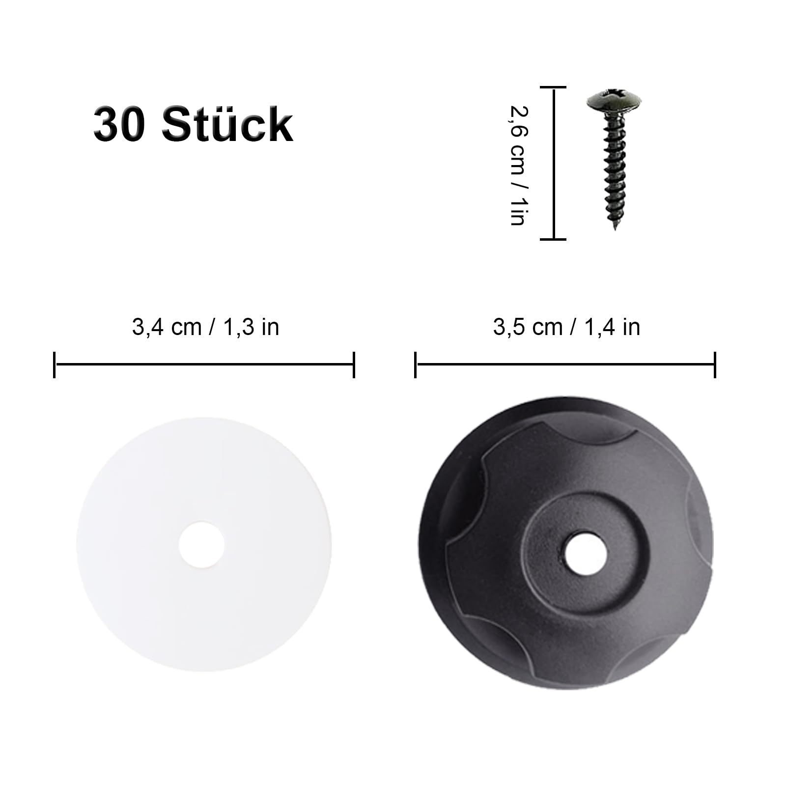 Perfekte Lösung für deine Anhängerplane! Dieses Set mit 30 Planenhaken und 30 Schrauben macht das Befestigen zum Kinderspiel. Aus robustem, unzerbrechlichem Kunststoff - UV-beständig, wasserdicht und absolut wetterfest. Die abgerundeten Kanten ohne Grate schützen deine Plane vor Beschädigungen. Mit ca. 3mm Durchmesser und 2mm Höhe super stabil und reißfest. Ideal für Anhängernetze, Kofferraumnetze, Expanderhaken oder Planen mit Gummiseilen. Einfach montieren - Schrauben durch die Plane und Haken drauf. Hält deine Ladung sicher fest, egal ob beim Umzug, Transport oder auf der Baustelle. Die schwarze Farbe sieht dabei noch total unauffällig aus. Nie wieder wackelige Planen! Ein Muss für jeden Anhängerbesitzer. Einfach bestellen und deine Transporte werden sicherer und entspannter.