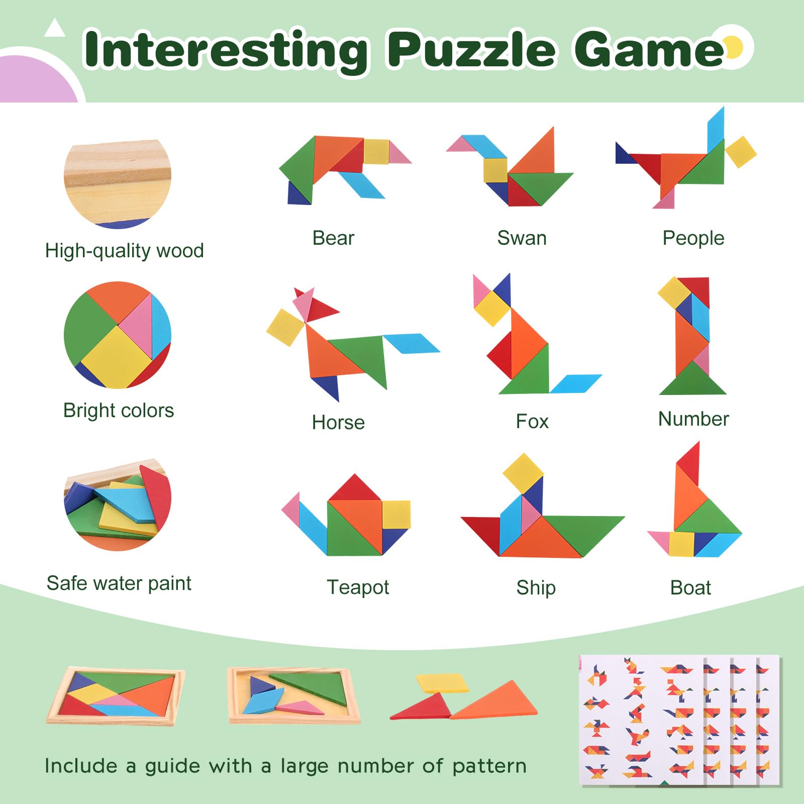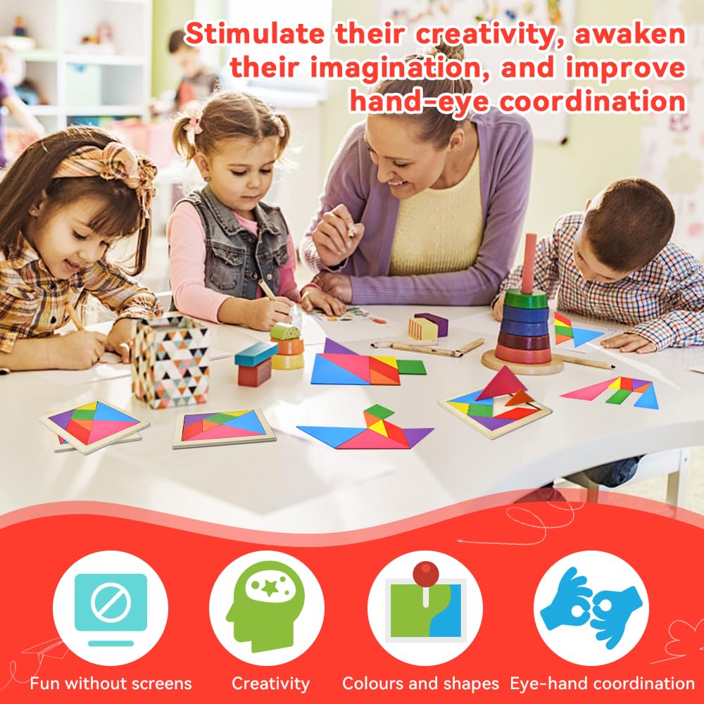 Kreativität fördern war noch nie so schön! Dieses 30-teilige Tangram Set aus glattem, schadstofffreiem Holz begeistert kleine und große Puzzle-Fans. Mit 90 Vorlagen für Tiere, Fahrzeuge, Zahlen und mehr - da ist für jede Stimmung was dabei. Jedes der 30 Teile hat abgerundete Kanten und ist ca. 10cm groß - perfekt für Kinderhände. Fördert spielerisch räumliches Denken, Feinmotorik und Problemlösungsfähigkeiten. Montessori-inspiriert und pädagogisch wertvoll. Super für unterwegs, als Reisespiel oder für Kindergeburtstage. Ohne Bildschirmzeit und mit echtem Lerneffekt! Achtung: Nicht für Kinder unter 3 Jahren wegen verschluckbarer Kleinteile. Ein Geschenk das nicht nur Spaß macht, sondern auch klug macht!