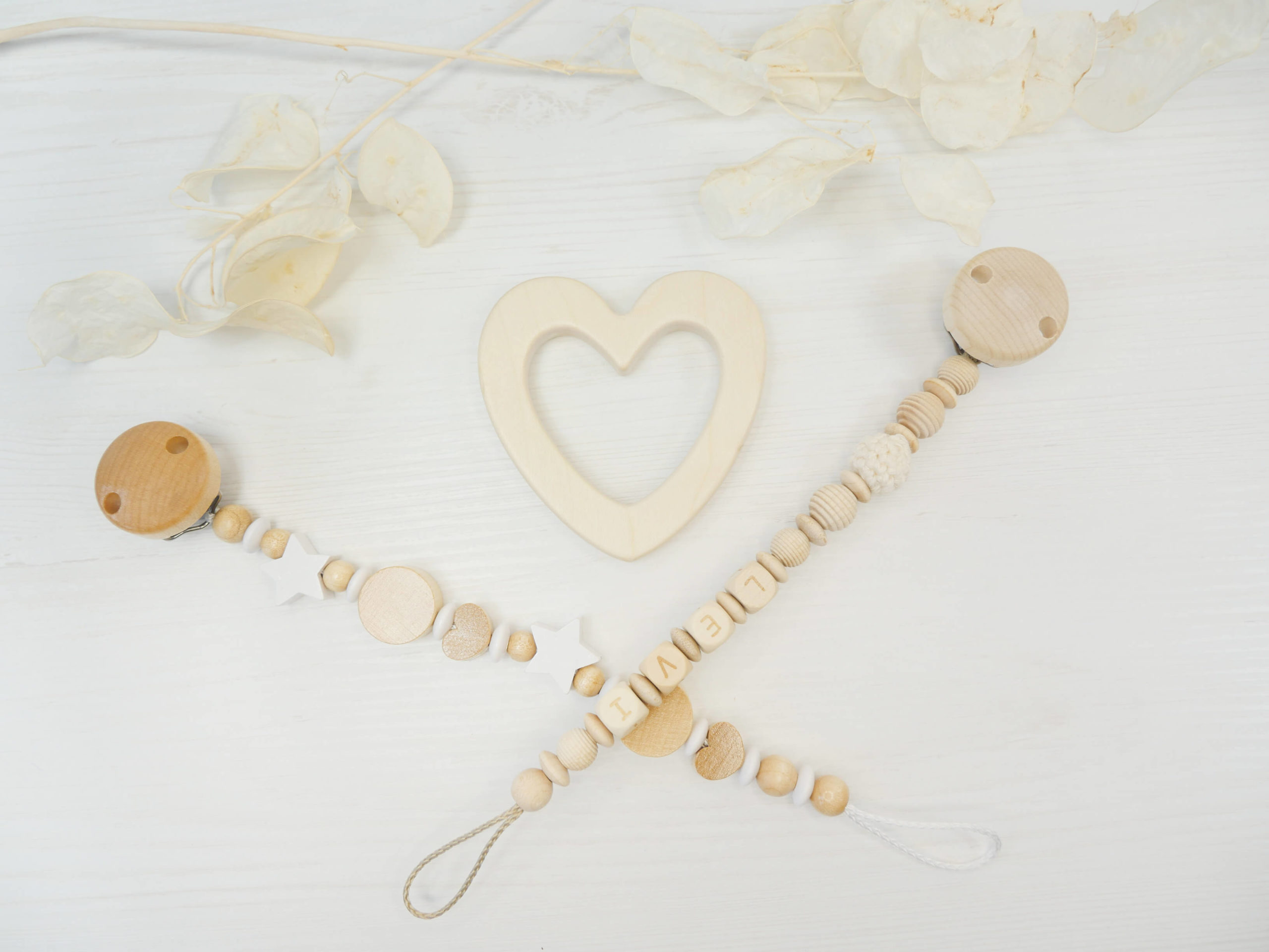 Wow, was für ein geniales Bastelset für die nächste Babyparty! Mit 300 Teilen in harmonisch abgestimmten Farben kannst du hier bis zu 12 individuelle Geschenke selbst gestalten. Das Besondere: 100 Holzbuchstaben basierend auf den häufigsten Buchstaben deutscher Vornamen - so gehen dir garantiert nicht die wichtigen Buchstaben aus! Im Gegensatz zu Billig-Sets aus Fernost bekommst du hier Qualität: BPA-freies Silikon in Lebensmittelqualität, extrem reißfeste Schnur und unbehandeltes Buchenholz. Alles ist lutsch- und speichelfest nach DIN EN 12586. Und das Beste: Deutsche Videoanleitung macht es auch für Bastelanfänger super einfach! Alles ist dabei - Clips, Fädelnadel, Schnüre in verschiedenen Farben. Keine versteckten Zusatzkosten! Einfach auspacken und loslegen. Perfekt für kreative Babyparty-Spiele oder um personalisierte Armbänder und Ketten für das Baby zu gestalten. Aus einem deutschen Startup aus Karlsruhe - da weißt du, was du bekommst!