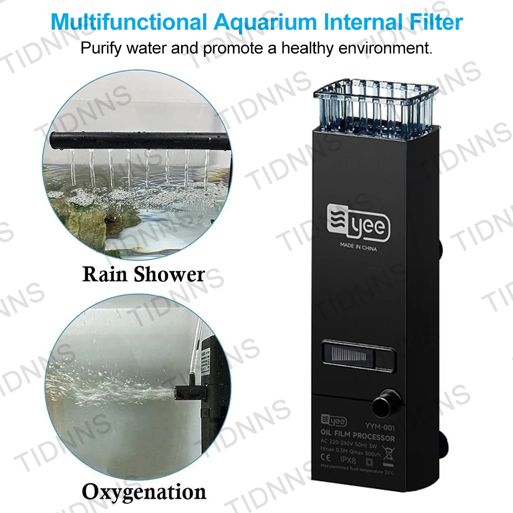 Schluss mit Ölfilm auf deinem Aquarium! Dieser Aquarium Skimmer entfernt effektiv Öl, Proteine und organische Ablagerungen von der Wasseroberfläche. Mit 300L/h Durchflussrate und nur 5W Verbrauch - energieeffizient und leise.