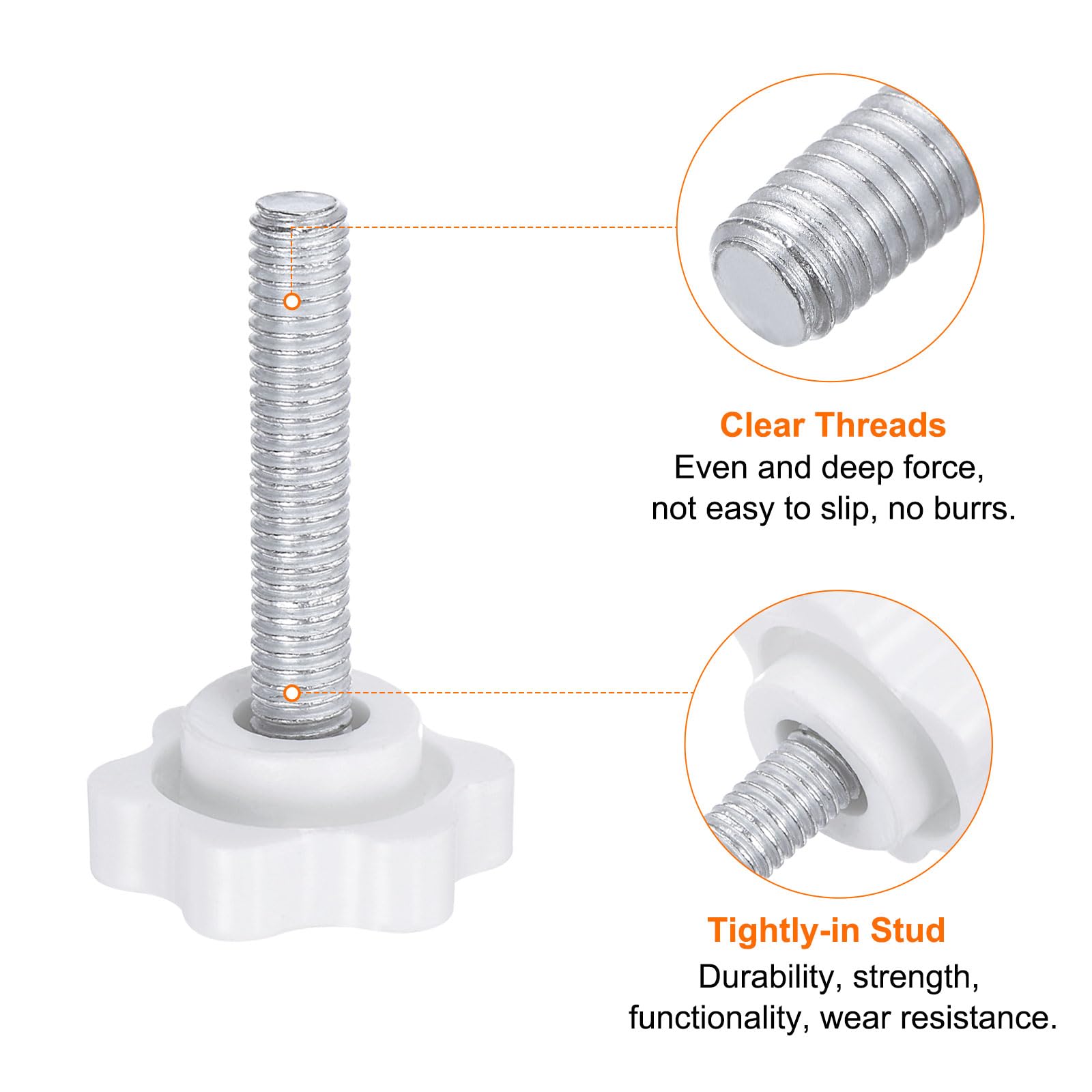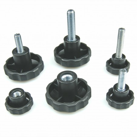 Super praktisch dieses Sterngriffschrauben-Set! Enthalten sind 4 komplette Schraubsets mit M8 Gewinde (1,25mm Steigung), jeweils mit Mutter und Unterlegscheibe. Die Schrauben haben 30mm Gewindelänge und der Sternkopf ist 39mm groß - liegt perfekt in der Hand. Aus verzinktem Kohlenstoffstahl gefertigt, also richtig robust und langlebig. Die 5-Stern-Form gibt mega guten Halt, rutscht nicht ab und du brauchst kein Werkzeug zum Festziehen. Perfekt für Maschinen, Möbel, Vorrichtungen oder was du sonst so fixieren musst. Die Edelstahl-Muttern und Unterlegscheiben sind rostfrei und korrosionsbeständig. Einfach reinschrauben, mit den Fingern festziehen und schon sitzt alles bombenfest. Total praktisch wenn du öfter mal was justieren oder fixieren musst - und sieht auch noch professionell aus!