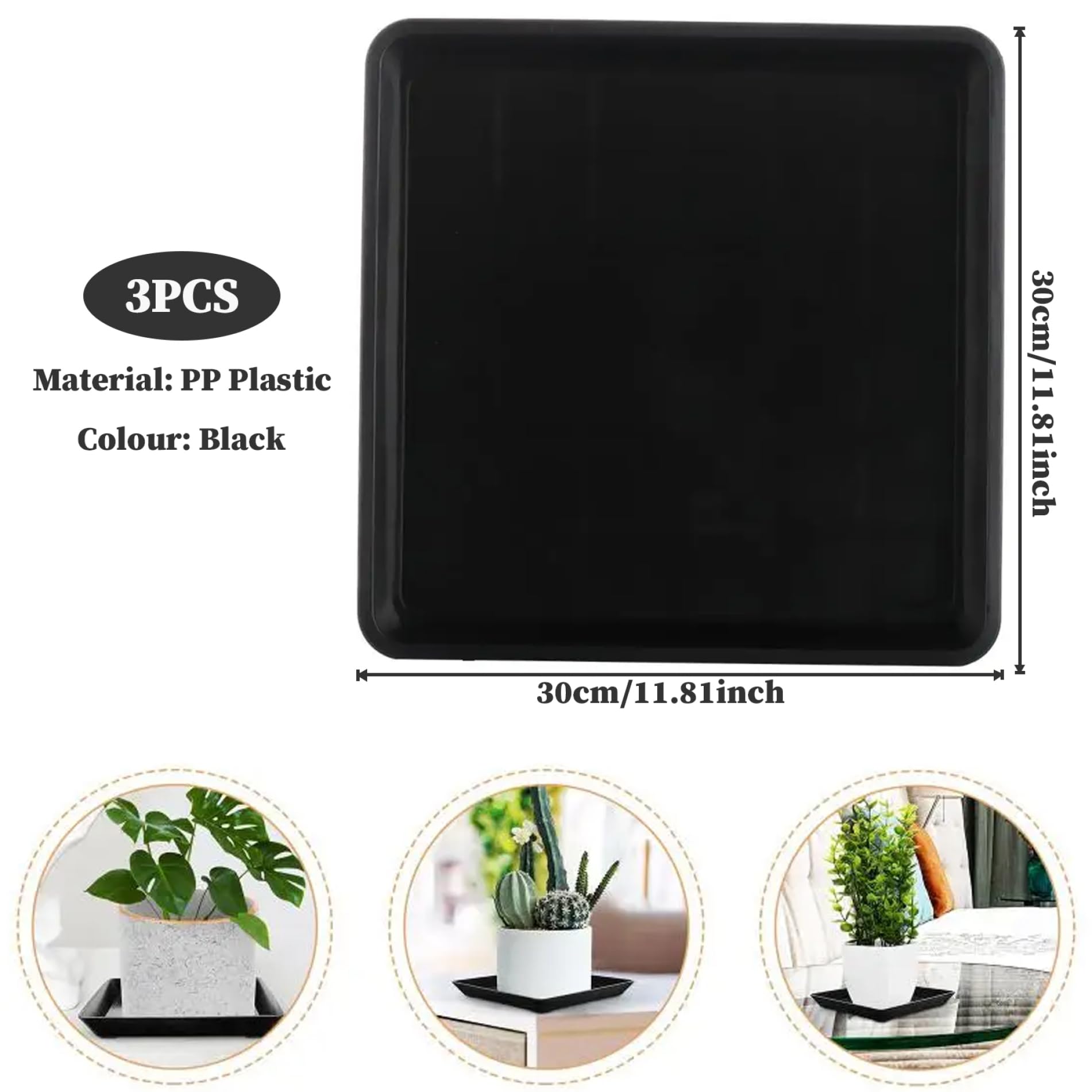 • 3er Set Pflanzenuntersetzer 30x30 Cm | Quadratische Auffangschalen Aus Kunststoff | Für Drinnen & Draußen