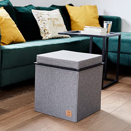Platzproblem? Dieser Aufbewahrungs-Hocker ist die Lösung! 30x30x30cm groß - perfekt für kleine Wohnungen. Oben weich gepolstert als Sitzgelegenheit, unten verstecktes Fach für Schuhe, Spielzeug oder Krimskrams. Aus hochwertigem Leinen - sieht schick aus, leicht zu reinigen. Super stabil - hält bis zu 130kg aus! Die erhöhten Beine sind praktisch: Staubsauger-Roboter passt drunter, keine Staubfallen. Und das Beste: Klappbar! Wenn nicht gebraucht, einfach zusammenfalten und wegstellen. Unter Betten, in Schränken oder auf dem Balkon - überall platzsparend. In Grau oder Dunkelgrau - passt zu jedem Einrichtungsstil. Ob im Flur, Wohnzimmer oder Schlafzimmer - dieser Hocker ist einfach praktisch! Endlich Ordnung und Sitzgelegenheit in einem! Hol ihn dir und gewinne Platz zurück - du wirst ihn lieben!