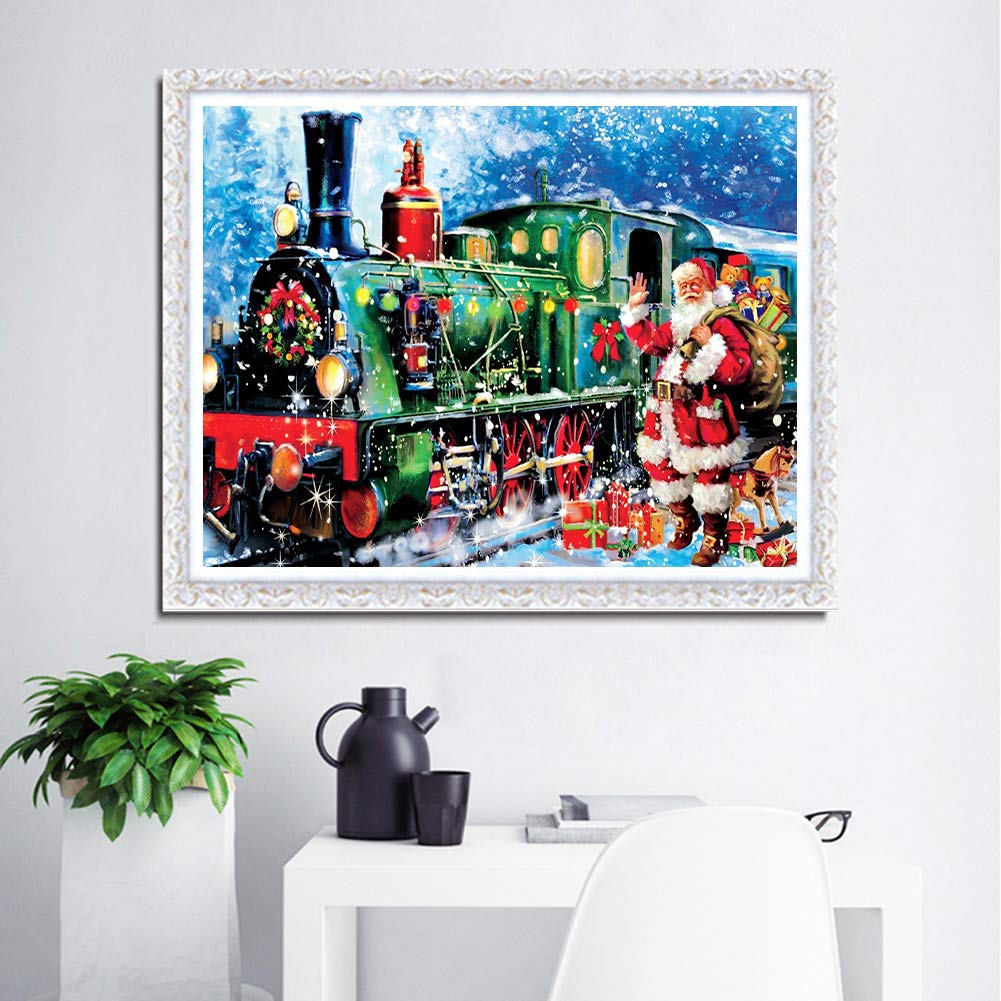 Entspannung pur mit diesem wunderschönen Diamond Painting! Das Weihnachtsmann-Zug Motiv in 30x40 cm bringt sofort festliche Stimmung ins Haus. Alles dabei: Leinwand, bunte Diamantsteinchen, Stift und Schale.\n\nEinfach die Steinchen nach der Farbtabelle auf die klebrige Leinwand setzen - wie Malen nach Zahlen, nur mit funkelnden 'Diamanten'! Die runden Harz-Steinchen reflektieren das Licht super und geben dem Bild eine tolle 3D-Wirkung.\n\nPerfekt für gemütliche Abende, zur Entspannung oder als kreatives Hobby. Auch super für Kinder ab 4 Jahren (unter Aufsicht). Am Ende hast du ein wunderschönes, funkelndes Kunstwerk, das sich super als Weihnachtsdekoration macht.\n\nDas Set ist komplett - du brauchst nur noch etwas Geduld und Lust auf Kreativität. Rahmen nicht inklusive, aber das Bild passt in jeden Standard-30x40-Rahmen. Ein tolles Geschenk oder einfach was Schönes für dich selbst!