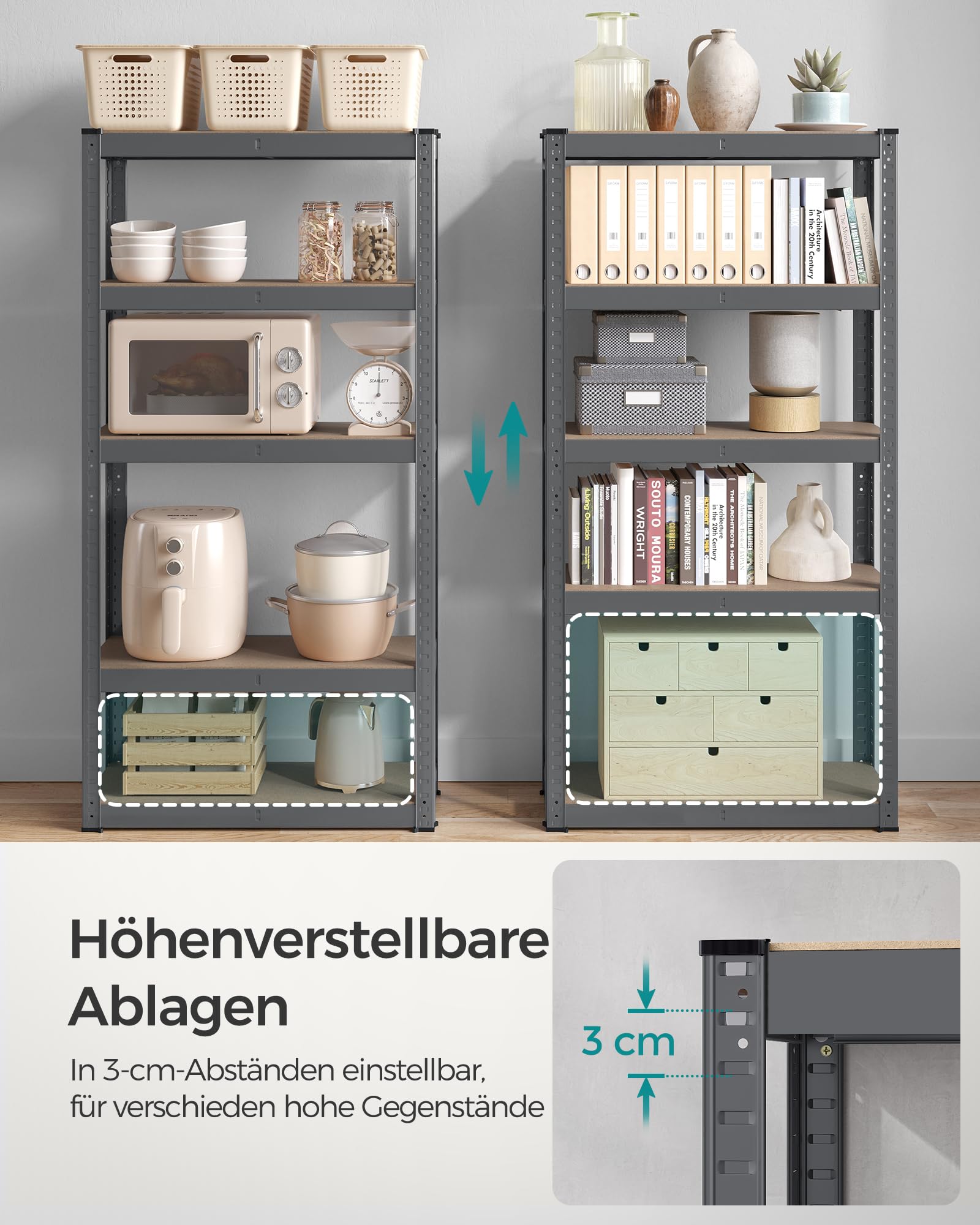 Boah, dieses SONGMICS Schwerlastregal Set ist der absolute Hammer für Garage, Keller und Lagerraum! Im 2er-Set - doppelt so viel Stauraum! Jedes Regal misst 30 x 75 x 150 cm - da passt echt was rein! Bis zu 650 kg Gesamtbelastung - und jede einzelne Ablage hält 130 kg aus! Aus robustem Stahl - das hält ewig! 5 verstellbare Ablagen - kannst du alle 3 cm anpassen! Perfekt für große Gegenstände wie Werkzeugkisten, Getränkekisten oder Sportgeräte! Mit Kippschutz - kann sicher an der Wand befestigt werden! Super flexibel: Kannst die Regale auch teilen und als zwei kleine Regale nutzen! Einfache Montage - die Ablagen einfach ineinanderstecken und fertig! Ob für die Werkstatt, den Hobbyraum oder den Vorratskeller - mit diesen Regalen hast du endlich Ordnung! Macht aus jedem Chaos eine aufgeräumte Oase! Einfach aufbauen und sich über massig Stauraum freuen! Perfekt für Heimwerker, Sammler und alle die Platz optimal nutzen wollen!