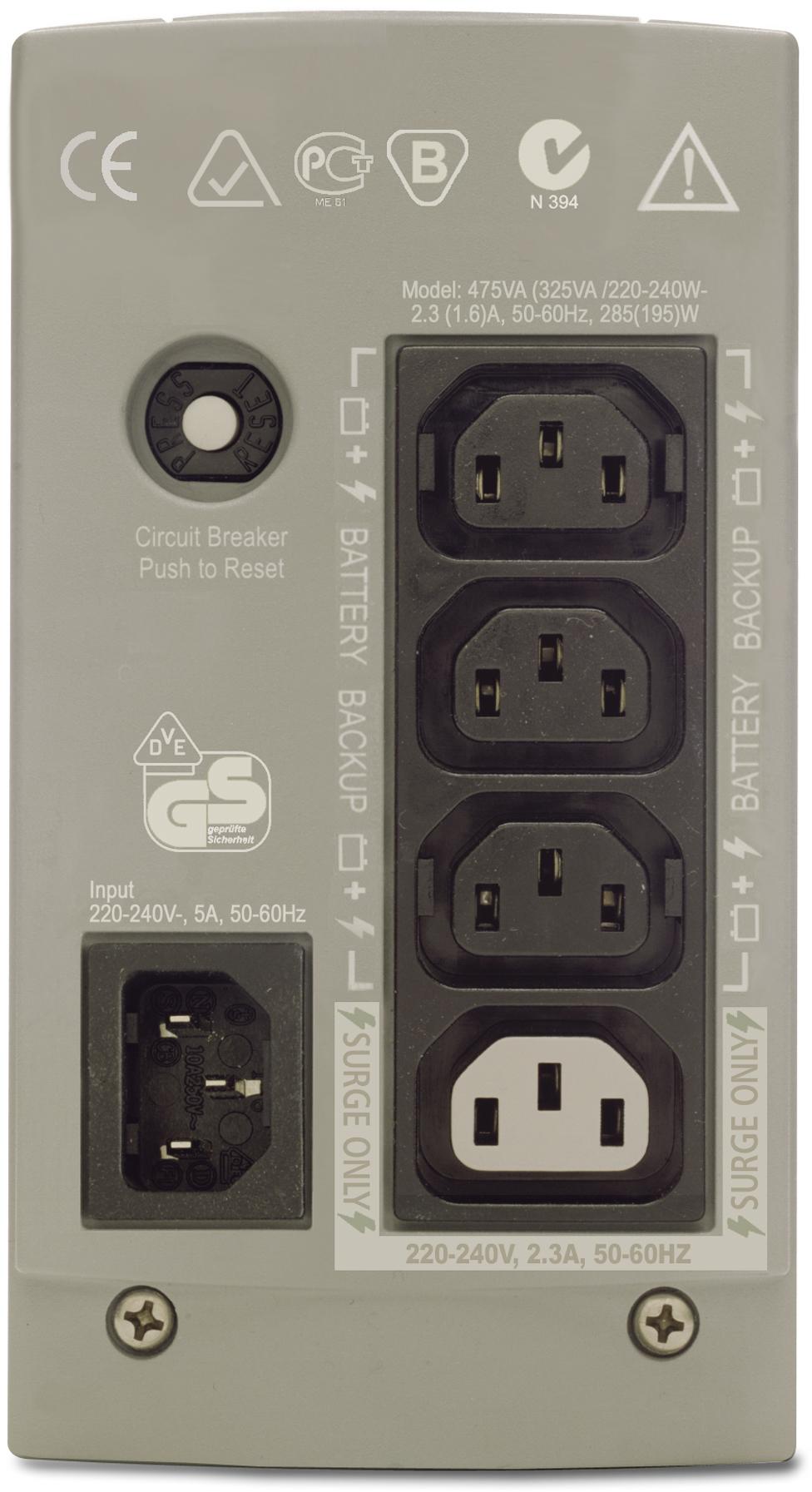 Features? 4 Schukosteckdosen - alle mit Überspannungsschutz, davon 2 batteriegepuffert. Bei Stromausfall schaltet sie sofort auf Akku um.
