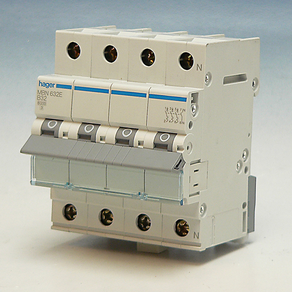 • Hager MBN632 Leitungsschutzschalter 4-polig 32A - Typ B, 6kA, Für Hutschienenmontage