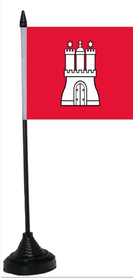 Zeig Flagge auf deinem Schreibtisch! Diese niedliche Tischflagge mit Deutschland und Hamburg Motiv ist der perfekte Hingucker fürs Büro oder Zuhause. Aus reißfestem Polyester gedruckt, zeigt sie die Farben in brillanter Leuchtkraft. Der stabile Holz-Sockel und -Mast sorgen für sicheren Stand, die Gesamthöhe beträgt 32 cm. Als besonderes Extra gibt's gratis Flaggenaufkleber dazu! Hergestellt in Taiwan - keine China-Ware. Perfekt für Patrioten, Hamburg-Fans oder einfach alle, die ihr Zuhause oder Büro mit einer persönlichen Note verschönern wollen. Auch ein tolles Geschenk für Kollegen, Freunde oder Familienmitglieder. Kleine Flagge, große Wirkung - hol dir ein Stück Heimat auf den Schreibtisch!