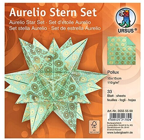 Weihnachtszeit ist Bastelzeit! Mit diesem Ursus Aurelio Stern-Set kreierst du den beliebten 3D-Weihnachtsstern ganz easy selbst. Im Set sind 33 türkise Faltblätter aus Transparentpapier (115g/qm), jedes ca. 14,8x14,8cm groß und einseitig mit dem schönen Paradiso-Design bedruckt. Du faltest einfach die 30 Teile identisch und setzt sie dann zum spektakulären Stern zusammen - die restlichen 3 Blätter sind Reserve für den Fall, dass mal was schiefgeht. Das Transparentpapier lässt das Licht wunderschön durchscheinen, besonders mit LED-Lichtern dahinter! Perfekt als Fensterdekoration, für den Weihnachtsbaum oder als besonderes Geschenk. Selbst wenn du nicht der geborene Bastler bist - mit der Anleitung kriegst du das hin! Der Stern sieht so professionell aus, dass alle denken, du hast ihn teuer gekauft. Mach dein Zuhause weihnachtlich gemütlich - der Stern ist einfach ein Hingucker!