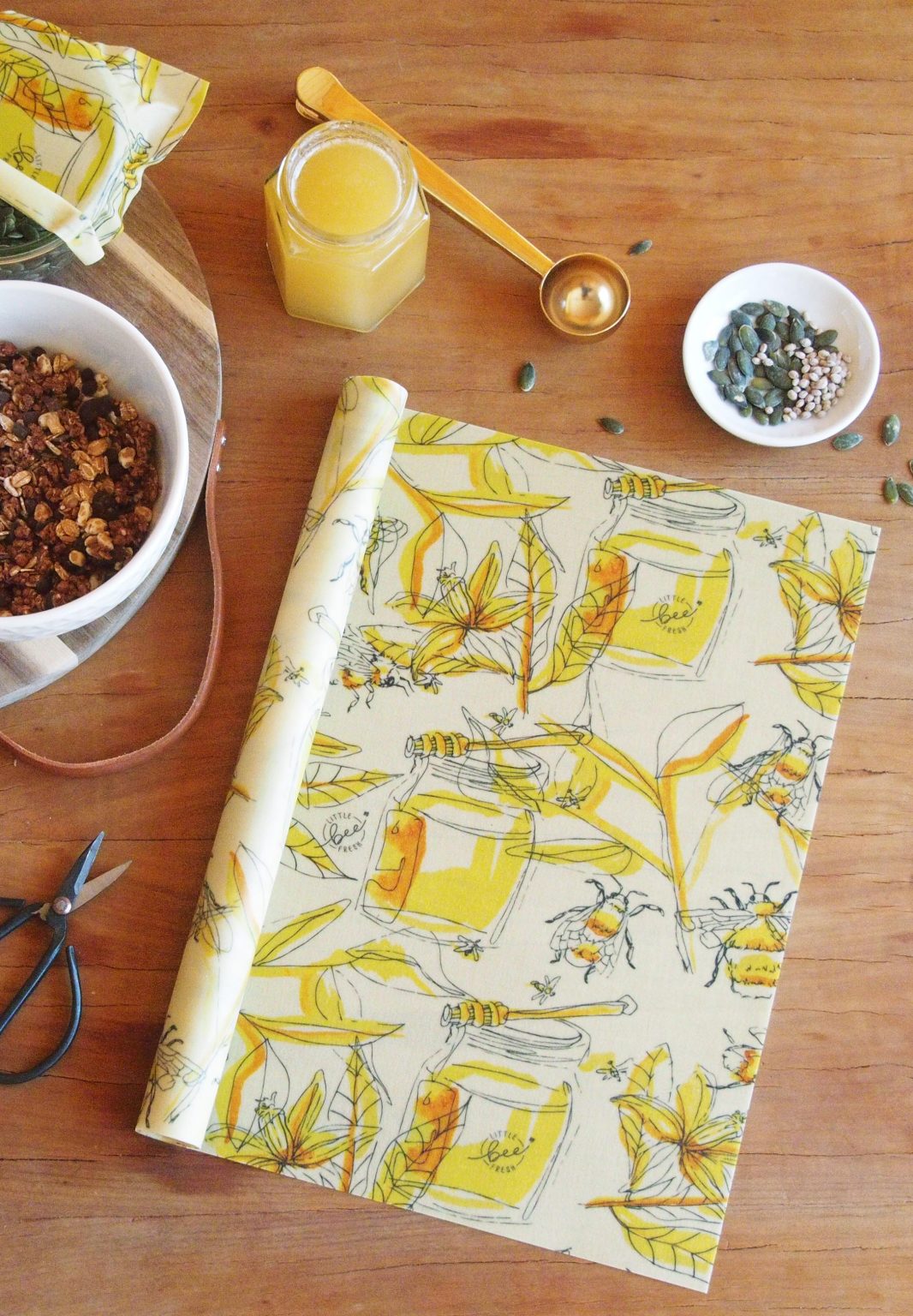 Endlich umweltfreundliche Alternative zu Frischhaltefolie! Diese Bienenwachstücher aus Bio-Baumwolle, Bienenwachs, Jojobaöl und Baumharz sind komplett plastikfrei. Die große Rolle mit 33x100cm kannst du nach Bedarf zuschneiden - perfekt für Käse, Brot, Obst oder zum Abdecken von Schüsseln. Einfach mit der Wärme der Hände formen und das Tuch verschließt sich wie von selbst. Nach Gebrauch einfach mit kaltem Wasser und mildem Spülmittel reinigen. Hält bei regelmäßiger Nutzung bis zu 6 Monate. Mach deine Küche plastikfrei - damit tust du der Umwelt was Gutes!