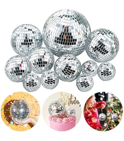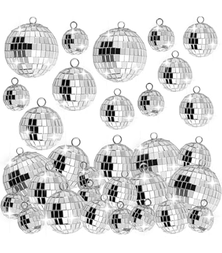 Mach deine Party zum glänzenden Event! Dieses 35-teilige Set mit Mini-Discokugeln in 4 Größen (2cm, 3cm, 4cm, 5cm) bringt Disco-Feeling in jeden Raum. Aus bruchfestem Spiegelglas mit umweltfreundlichem Schaumstoffkern - sicher und langlebig. Jede Kugel hat eine Aufhängeöse, inklusive 10m silberner Schnur zum einfachen Befestigen. Perfekt für Hochzeiten, Geburtstage, Weihnachtsfeiern oder als Torten-Deko. Die spiegelnde Oberfläche erzeugt magische Lichteffekte bei jeder Beleuchtung. Ob an der Decke, im Baum oder auf dem Buffet-Tisch - diese Discokugeln verwandeln jeden Raum in eine funkelnde Partyzone. Einfach aufhängen und die Show kann beginnen!