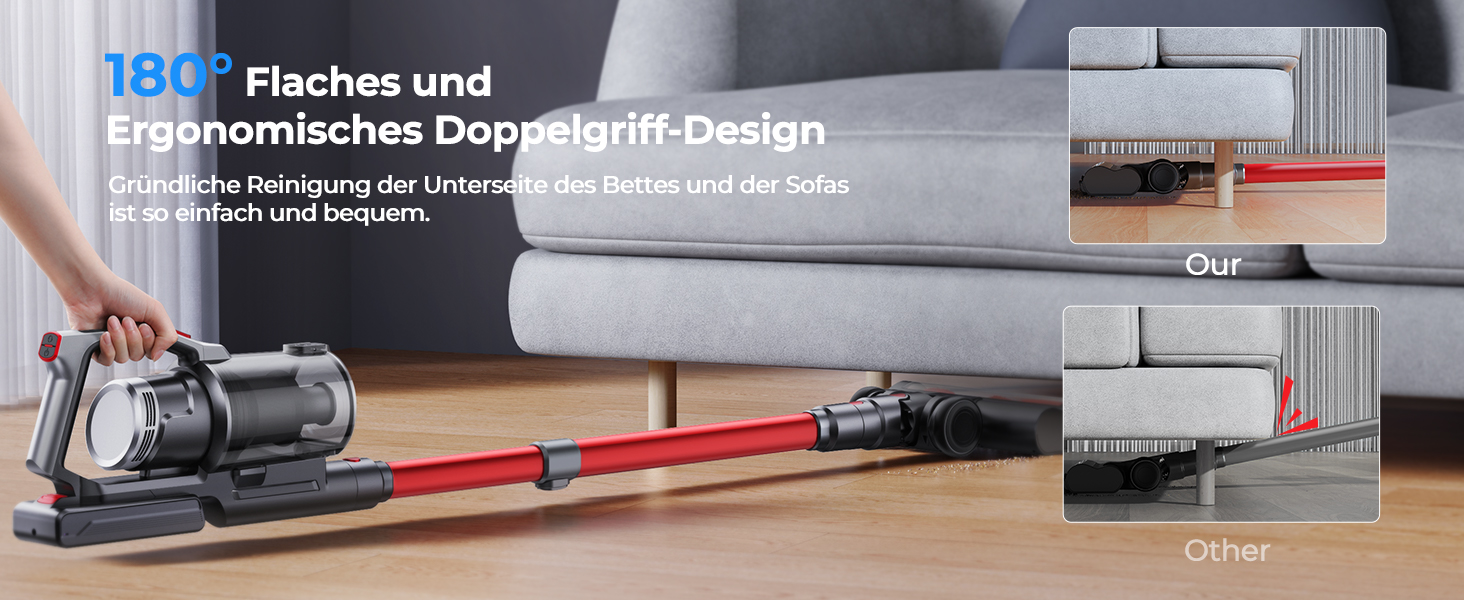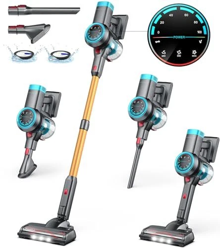 Saugen ohne Kabel! Dieser Akku-Staubsauger hat 35000Pa Power und läuft bis zu 50 Minuten. Mit 2*3000mAh Akkus, wechselbar. 6-in-1: Bodendüse, 2-in-1-Bürste, etc. Für Hartböden, Teppiche, Sofa, Auto. HEPA-Filter für 99,99% Staub. Leicht (1,1 kg) und leise (<68dB). Mit LED-Licht für dunkle Ecken. Perfekt für Tierbesitzer oder Allergiker. Mach dein Zuhause sauberer ohne Stress! Inklusive Wandhalterung und Ladegerät. Hol ihn dir und saug frei!