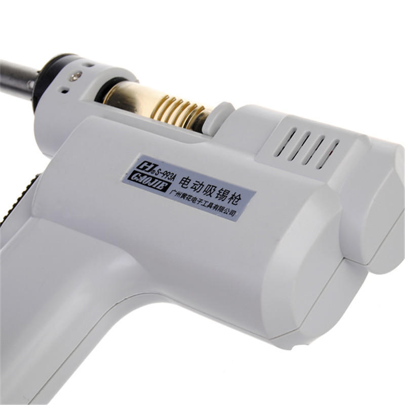 Einfache Bedienung: Strom anschließen, 5 Minuten aufheizen lassen, dann die Düse auf die Lötstelle setzen und den roten Knopf drücken – schwupps, ist das Zinn weg! Du kannst sie mit einer Hand bedienen, während die andere die Platine hält. Super praktisch für kleine Werkstätten oder Hobby-Elektroniker.