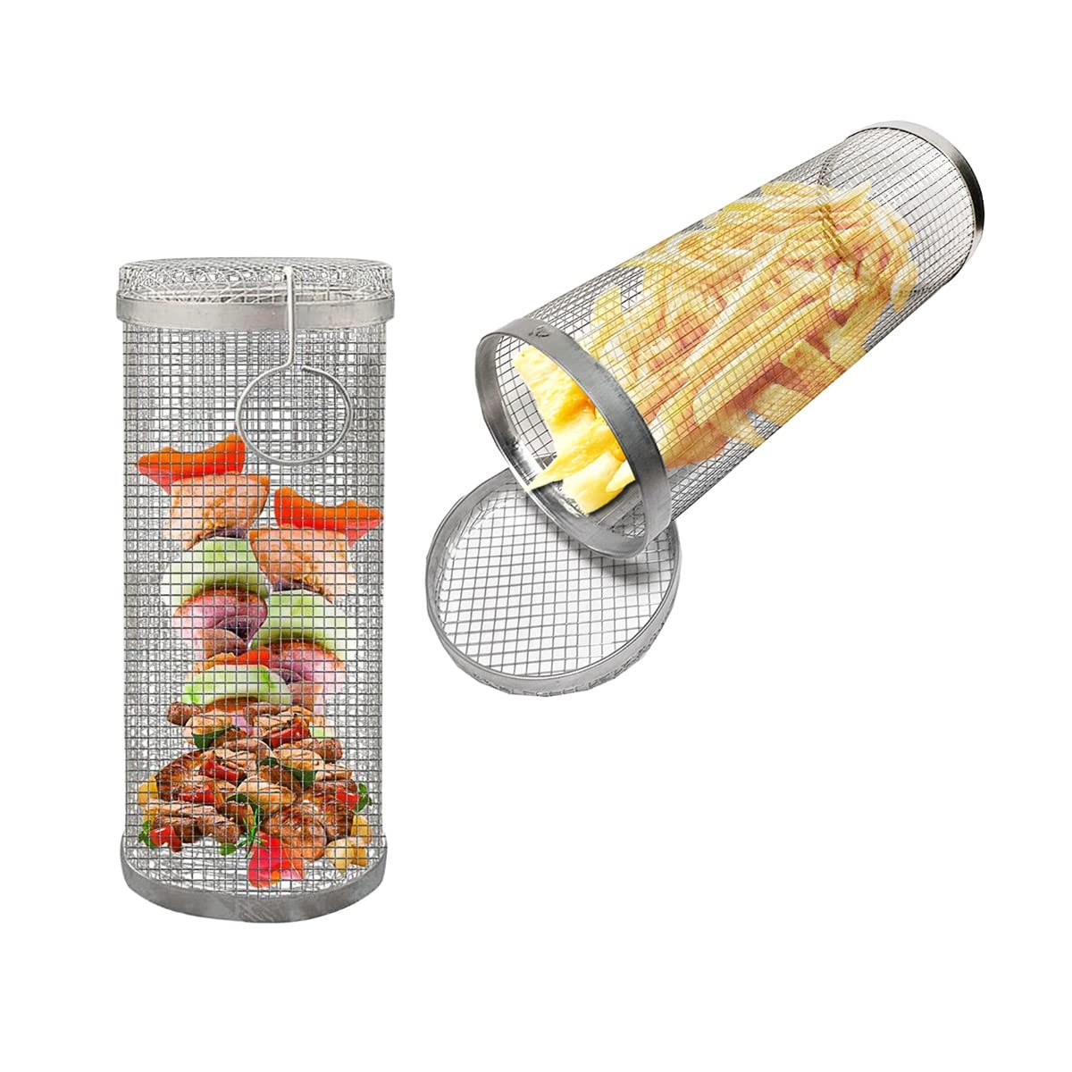 Grillen war noch nie so einfach! Dieser rollende Grillkorb aus Edelstahl dreht sich um 360 Grad - gleichmäßiges Grillen garantiert! Maße: 20cm lang, 9cm Durchmesser. Perfekt für Gemüse, Fleisch, Meeresfrüchte oder sogar Nüsse und Kaffeebohnen. Einfach über die Glut hängen und durch Drehen gleichmäßig garen lassen. Mit Gabeln und Haken für einfache Handhabung. Super für Garten-Partys, Camping oder Balkon-Grillen. Verhindert Anbrennen und sorgt für perfekte Röstaromen. Achtung: Wird sehr heiß - immer mit Grillhandschuhen anfassen! Macht das Grillen zum entspannten Erlebnis ohne ständiges Wenden. Ein echter Game-Changer für jeden Grill-Fan!