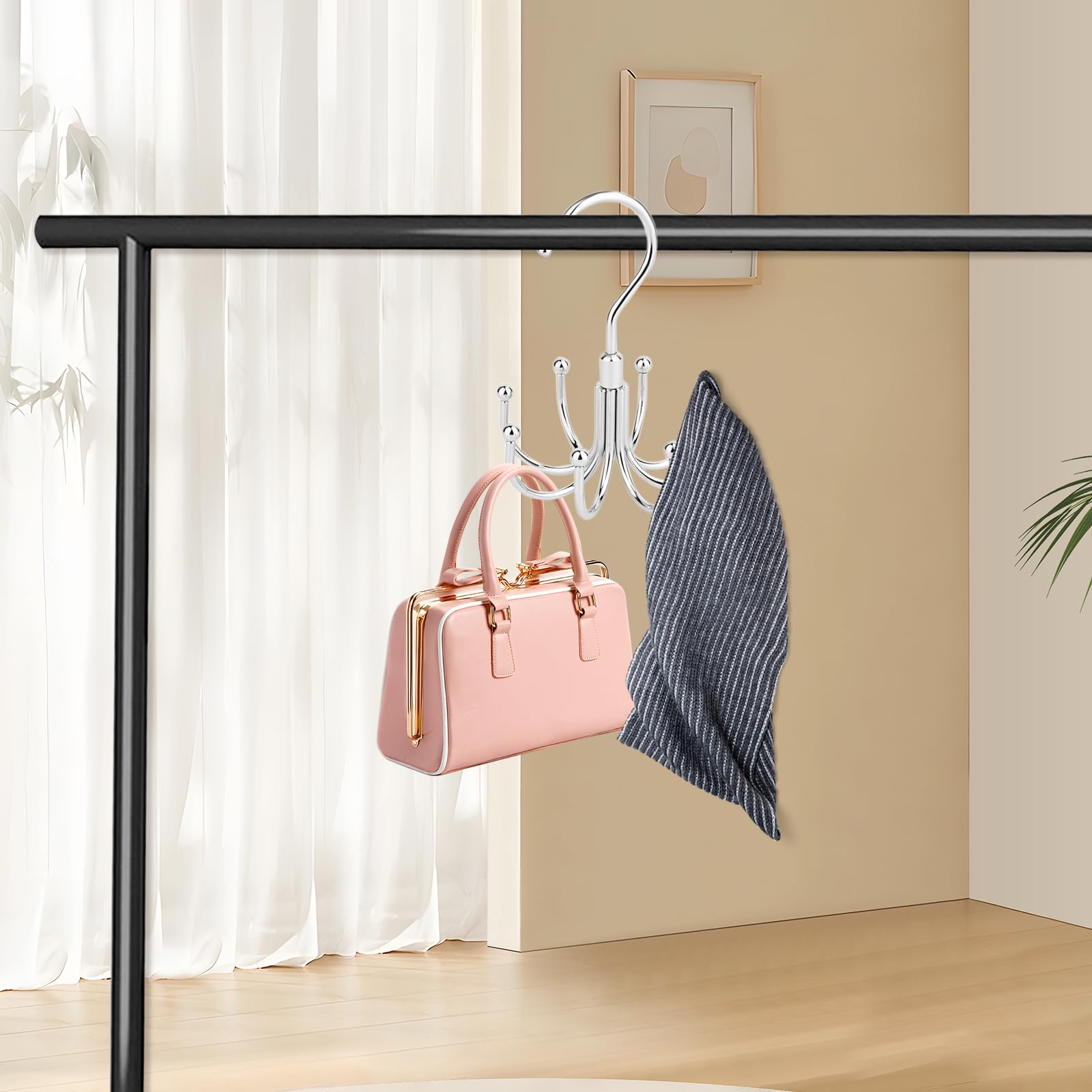 Endlich Ordnung im Schrank! Dieser stylische Halter aus massivem Holz ist der perfekte Organizer für deine Gürtel und Krawatten. Mit 20 Haken für bis zu 60 Krawatten und 14 U-förmigen Haken für bis zu 42 Gürtel hast du alle Accessoires perfekt sortiert griffbereit. Das geniale 360°-Drehsystem ermöglicht blitzschnelles Finden ohne langes Suchen. Die rutschfesten Haken mit 90°-Design halten alles sicher an Ort und Stelle - nichts fällt mehr runter! Besonders praktisch: Die klappbaren Haken sparen jede Menge Platz und verhindern lästiges Verheddern. Perfekt nicht nur für Gürtel und Krawatten, sondern auch für Schals, Tanktops oder sogar Handtaschen. Einfach an der Garderobe oder im Kleiderschrank aufhängen und von der übersichtlichen Ordnung profitieren. Das natürliche Holzdesign in Schwarz passt übrigens zu jedem Einrichtungsstil!