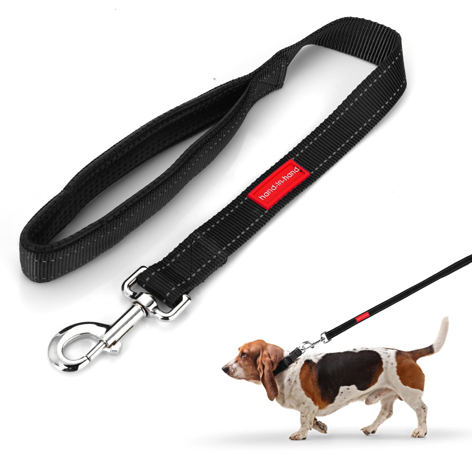 Perfekt für die Kontrolle bei kurzen Distanzen! Diese 38cm kurze Hundeleine ist ideal für Training, Tierarztbesuche oder überall dort, wo dein Hund nah bei dir bleiben soll. Der gepolsterte Griff liegt super weich in der Hand - kein Drücken oder Scheuern auch bei längerem Gebrauch! Aus robustem Nylon geflochten und mit 360° drehbarem Metallclip - hält auch kräftigen Ziehern stand. In schwarz passt sie zu jedem Halsband. Super für große, mittlere und kleine Hunde gleichermaßen. Einfach einhaken und du hast deinen Vierbeiner immer unter Kontrolle. Praktisch, langlebig und komfortabel - was will man mehr?
