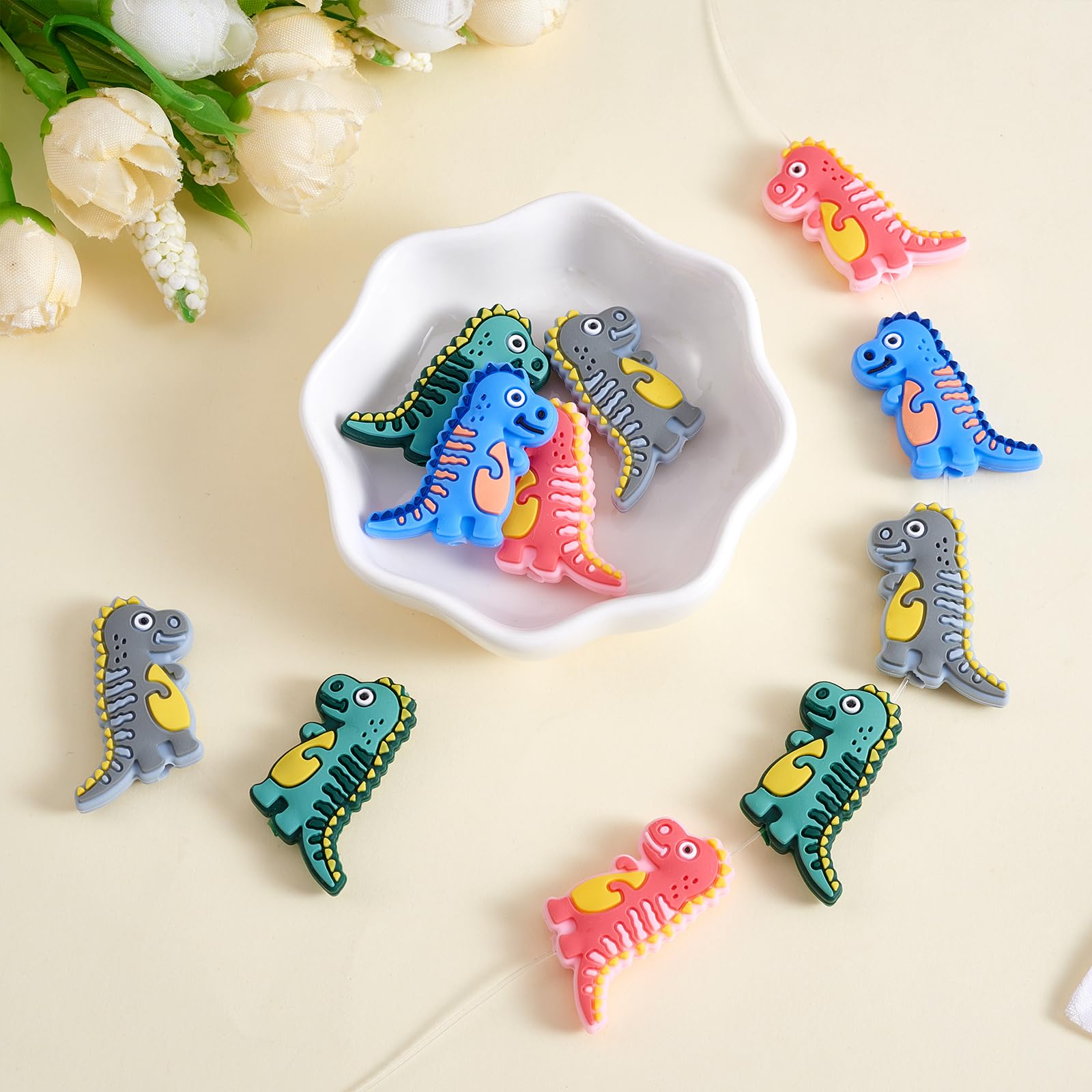 Abenteuerliche Bastelstunden mit niedlichen Dinosauriern! Dieses Set enthält 12 3D-Silikonperlen in 4 verschiedenen Dino-Designs (je 3 Stück pro Motiv). Die süßen Dinos in abgerundeten Formen sind perfekt für kreative Projekte mit Kindern. Aus hochwertigem, elastischem Silikon gefertigt, sind die Perlen waschbar, langlebig und können immer wieder verwendet werden. Ob für Schlüsselanhänger, Armbänder, Halsketten, Stifte-Verzierungen oder andere Bastelarbeiten - mit diesen niedlichen Dino-Perlen wird jedes Projekt zum Highlight. Die Perlen lassen sich einfach auffädeln und verleihen deinen Kreationen eine fröhliche, verspielte Note. Perfekt für Kindergeburtstage, Bastelnachmittage oder als Geschenk für kleine Dino-Fans. Auch Erwachsene lieben die verspielten Motive für ihre persönlichen Accessoires. Die Perlen sind ein tolles Mitbringsel, für die Schultüte oder einfach als kleine Aufmerksamkeit zu jedem Anlass. Mit diesem Set hast du genug Perlen für mehrere Projekte oder kannst sie mit Freunden teilen. Lass deiner Kreativität freien Lauf und gestalte einzigartige Accessoires, die garantiert auffallen!