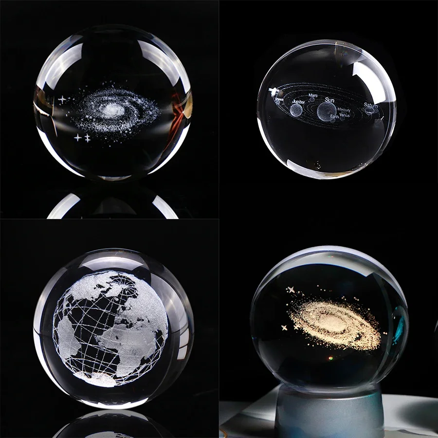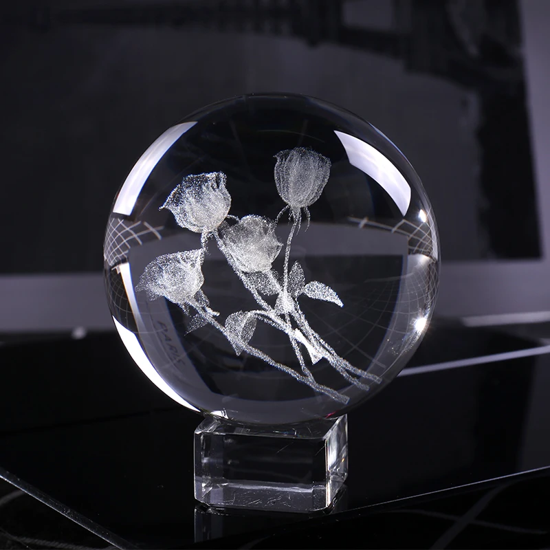 3D Kristallkugel Mit Kleeblatt Gravur - 8cm Glaskugel Deko