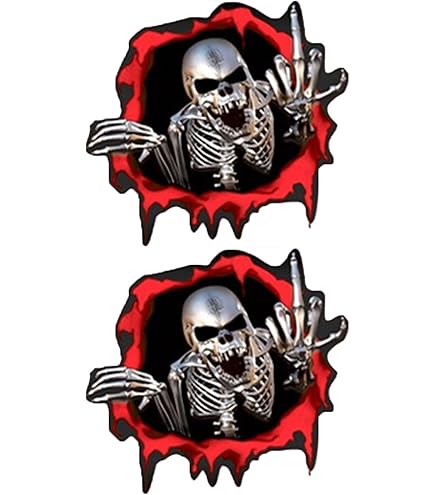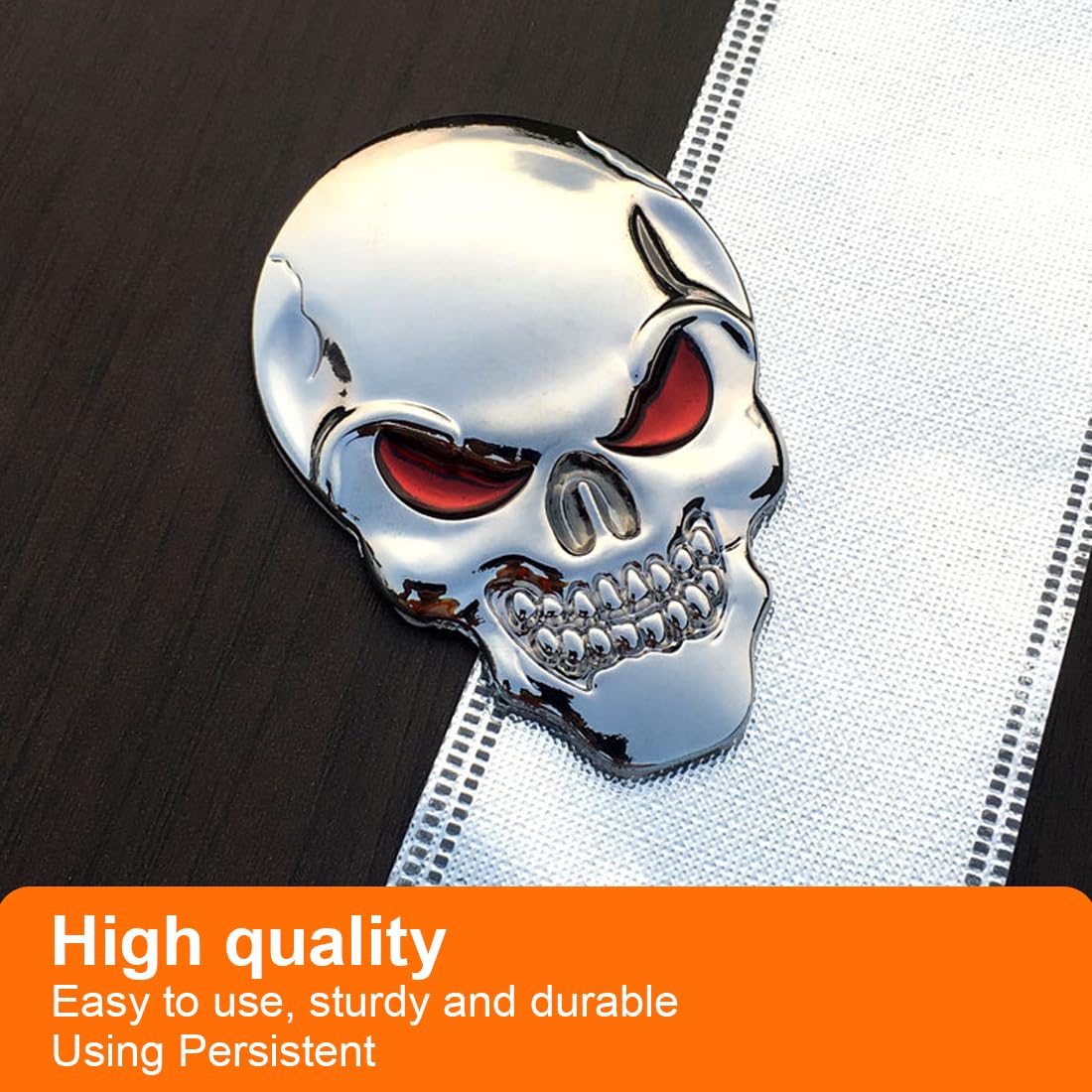 Coole Deko für dein Auto! Diese 3D Metall-Schädel Aufkleber geben deinem Fahrzeug den extra Style. Im 2er-Set - für Symmetrie oder verschiedene Positionen. Maße 5,3x4 cm - auffällig aber nicht zu groß. Aus Zinklegierung mit Chrom-Oberfläche - glänzend und langlebig. Mit roten Augen - gruselig und stylisch zugleich. Einfach anzubringen: Klebeschutz entfernen, auf saubere Fläche drücken und festhalten. Leicht zu entfernen - mit Fön erwärmen und abziehen. Vielseitig verwendbar - für Auto, Motorrad, Laptop, Helm oder Briefkasten. Damit wird dein Fahrzeug zum echten Hingeker - individuell und auffällig. Zeige deinen eigenen Style - bestell dir jetzt diese coolen Aufkleber!