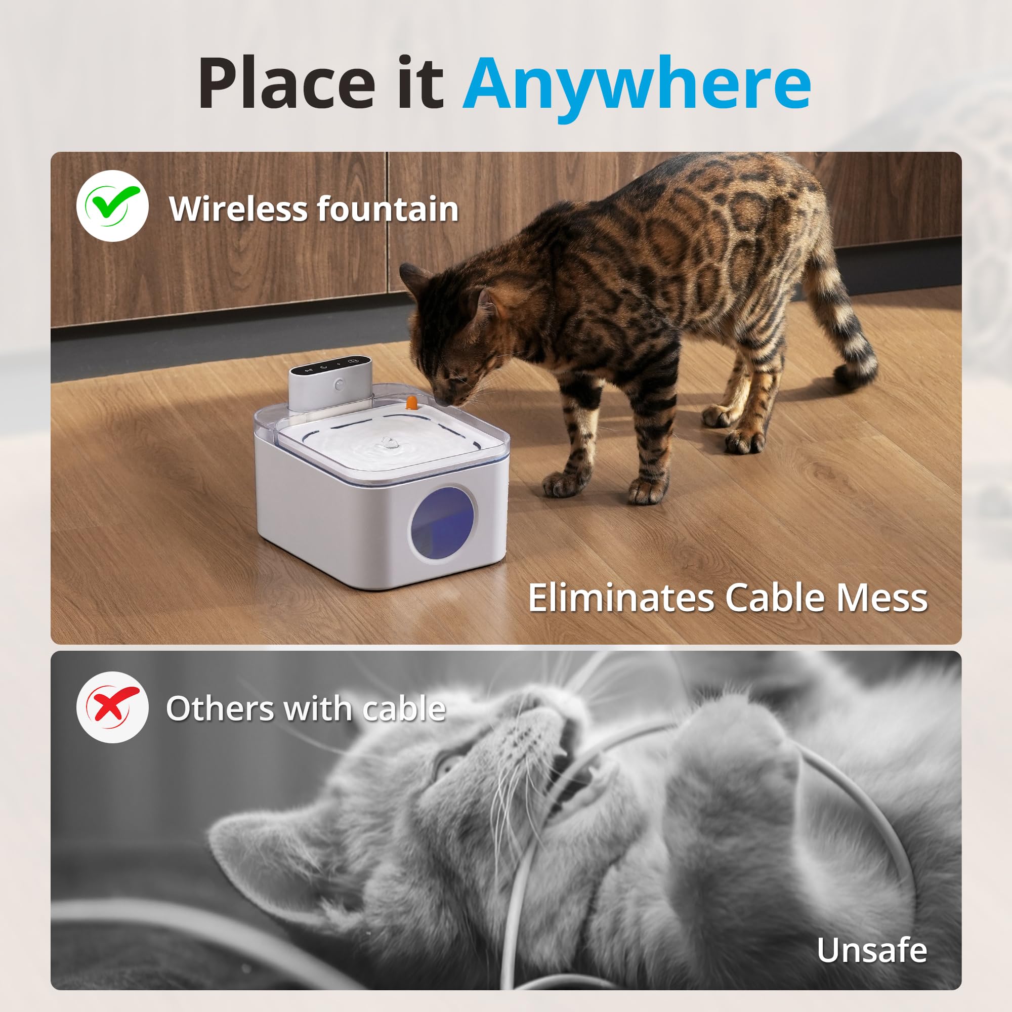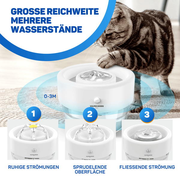 Boah, deine Katze wird diesen Trinkbrunnen lieben! Der Ferplast Astra ist komplett kabellos und wiederaufladbar - du kannst ihn also überall hinstellen, wo deine Samtpfote ihn mag. Der clevere Bewegungssensor aktiviert den Wasserfluss für 30 Sekunden, sobald deine Katze in der Nähe ist. Und damit das Wasser immer frisch bleibt, sorgt der 3-stufige Filter für kristallklares H2O: Vorfilter für groben Dreck, Kalkreduzierer und Aktivkohle gegen Gerüche. Mit 3 Litern Fassungsvermögen musst du nicht ständig nachfüllen. Die Pumpe schaltet sich automatisch ab, wenn der Wasserstand zu niedrig ist - super sicher! Einfach zu reinigen und zusammenbauen. So trinkt deine Katze garantiert mehr - gut für die Nieren und gegen Harnwegserkrankungen! Inklusive USB-C Kabel. Ein Must-Have für jede Katzenhaltung!