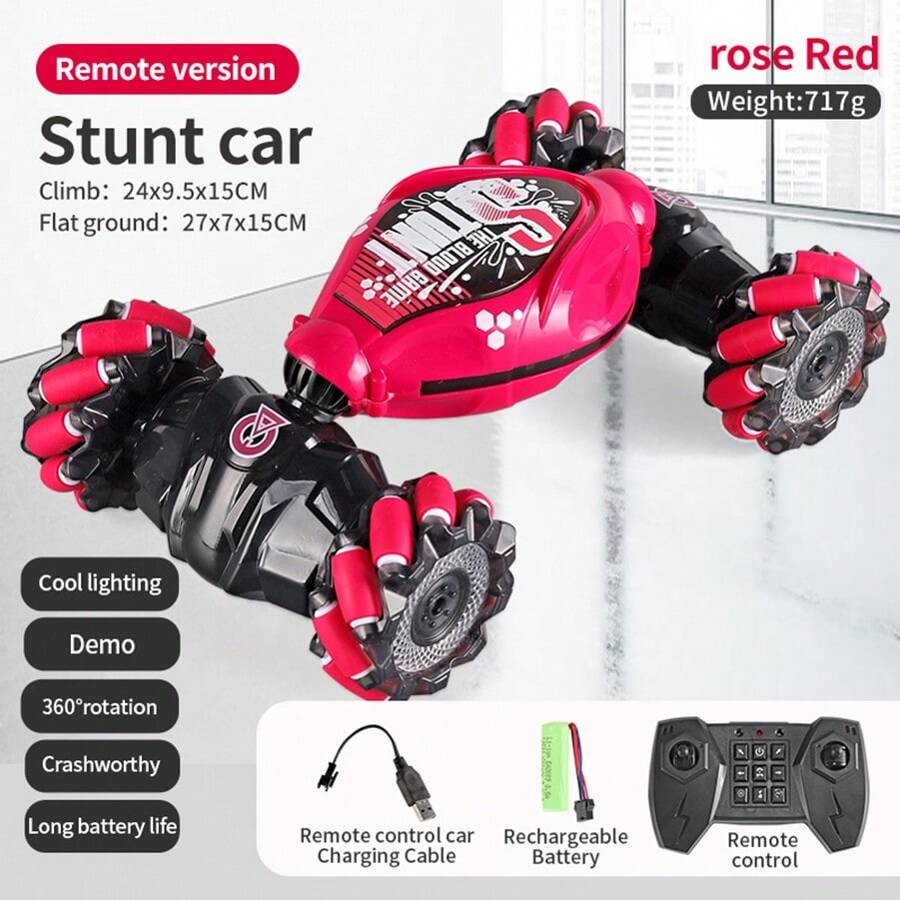 Alter, dieses ferngesteuerte Stunt-Auto ist der absolute Hammer! Mit 4WD-Antrieb und 360°-Flip-Funktion - das Teil dreht sich einfach um sich selbst! Ein Knopfdruck und es macht Saltos, driftet durch die Kurven und fährt sogar rückwärts genauso gut wie vorwärts. Die 20 bunten LED-Lichter machen nachts richtig was her und der Sprühstunt-Effekt ist einfach nur cool. Mit 2,4GHz-Fernsteuerung kannst du mit mehreren Autos gleichzeitig fahren ohne Störungen. Die All-Terrain-Reifen meistern Sand, Gras, Schotter und Beton - einfach überall einsetzbar. Aus robustem ABS-Material gebaut, hält es auch mal einen heftigen Aufprall aus. Der Akku ist wiederaufladbar per USB - super praktisch! Perfekt für Kinder ab 3 Jahren, aber auch größere Kids und Erwachsene haben ihren Spaß damit. Ob im Garten, Park oder Wohnzimmer - dieses Auto bringt Action und Adrenalin! Das ideale Geschenk für Geburtstage, Weihnachten oder einfach so. Hol dir den ultimativen Stunt-Spaß - deine Freunde werden neidisch sein!