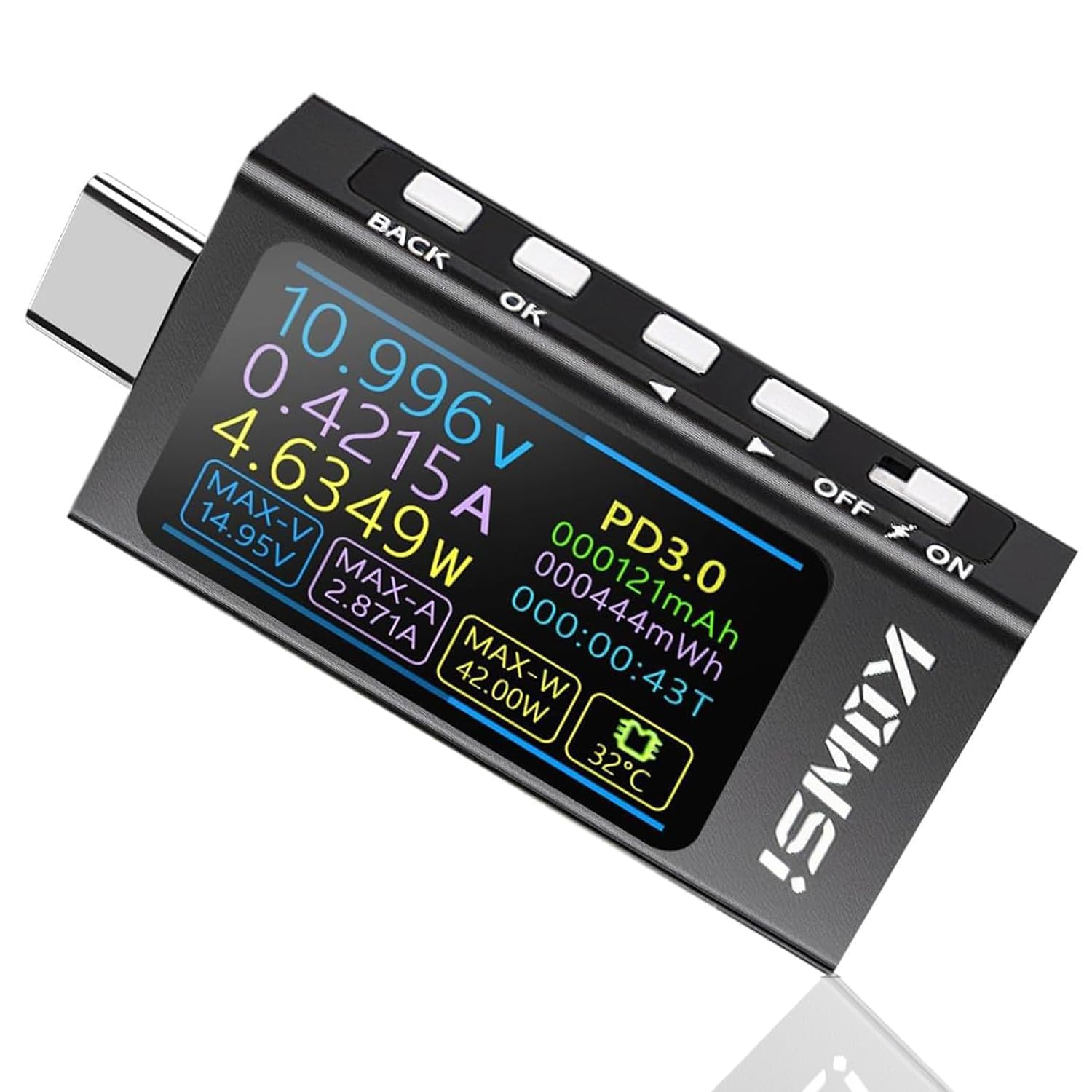 Wow, dieses USB Messgerät ist ja mal richtig professionell! Misst alles von Spannung (3.3V-40V) über Strom (bis 12A) bis zur Kapazität - einfach alles, was du wissen willst.