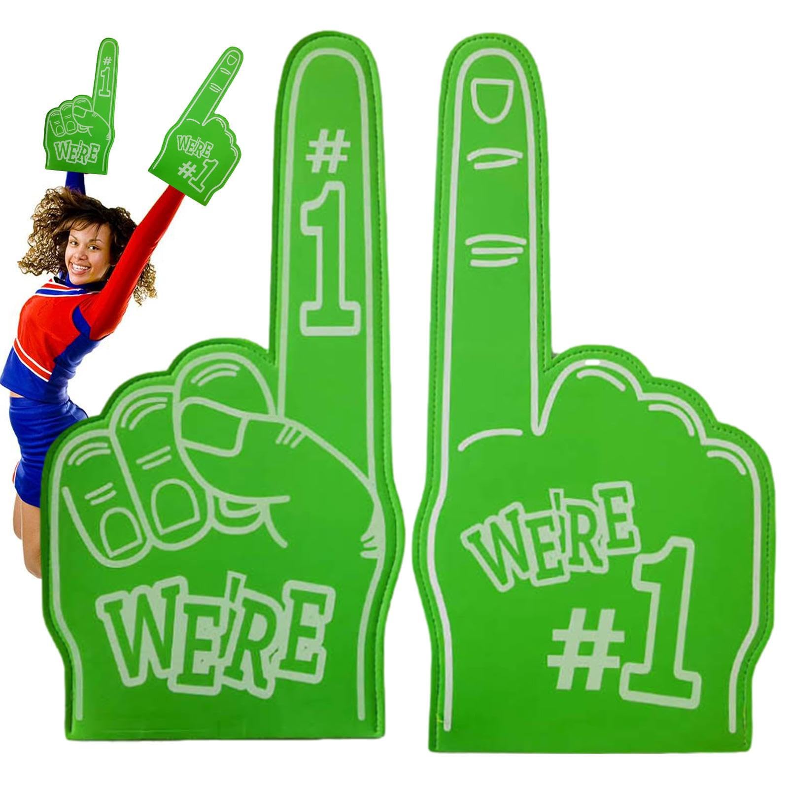 Mach laut Stimmung bei Sportevents! 3 hellgrüne Schaumstoff-Finger im Set. Ca. 45cm lang - passen für die meisten Hände. Leicht und langlebig, wiederverwendbar. Perfekt für Fußballspiele, Basketball, Partys oder Cheerleading. Einfach anziehen und losschreien - sorgt für fröhliche Stimmung! Auch toll als Kinderspielzeug oder für Festivals.