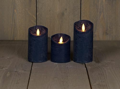 Gemütliche Atmosphäre ohne Brandgefahr! Dieses 3er Set LED-Kerzen sieht täuschend echt aus - mit Echtwachs-Mantel, flackernder Flamme und sogar einem 'abgebrannten' Look oben. Die magische Timer-Funktion schaltet die Kerzen automatisch für 6 Stunden ein und 18 Stunden aus - perfekt für tägliche Gemütlichkeit ohne manuelles An- und Ausschalten. Jede Kerze hat einen beweglichen Docht, der das Flackern einer echten Kerze täuschend echt nachahmt. Absolut sicher für Haushalte mit Kindern, Haustieren oder unter Vorhängen - keine Hitze, kein Ruß, keine Brandgefahr! Das Set enthält Kerzen in 10cm, 12,5cm und 15cm Höhe (jeweils 7,5cm Durchmesser) in Anthrazit. Jede Kerze benötigt 3 AAA Batterien (nicht im Lieferumfang). Genieße romantisches Kerzenlicht das ganze Jahr über - ob auf dem Kaminsims, im Weihnachtsgesteck oder beim Dinner für Zwei!